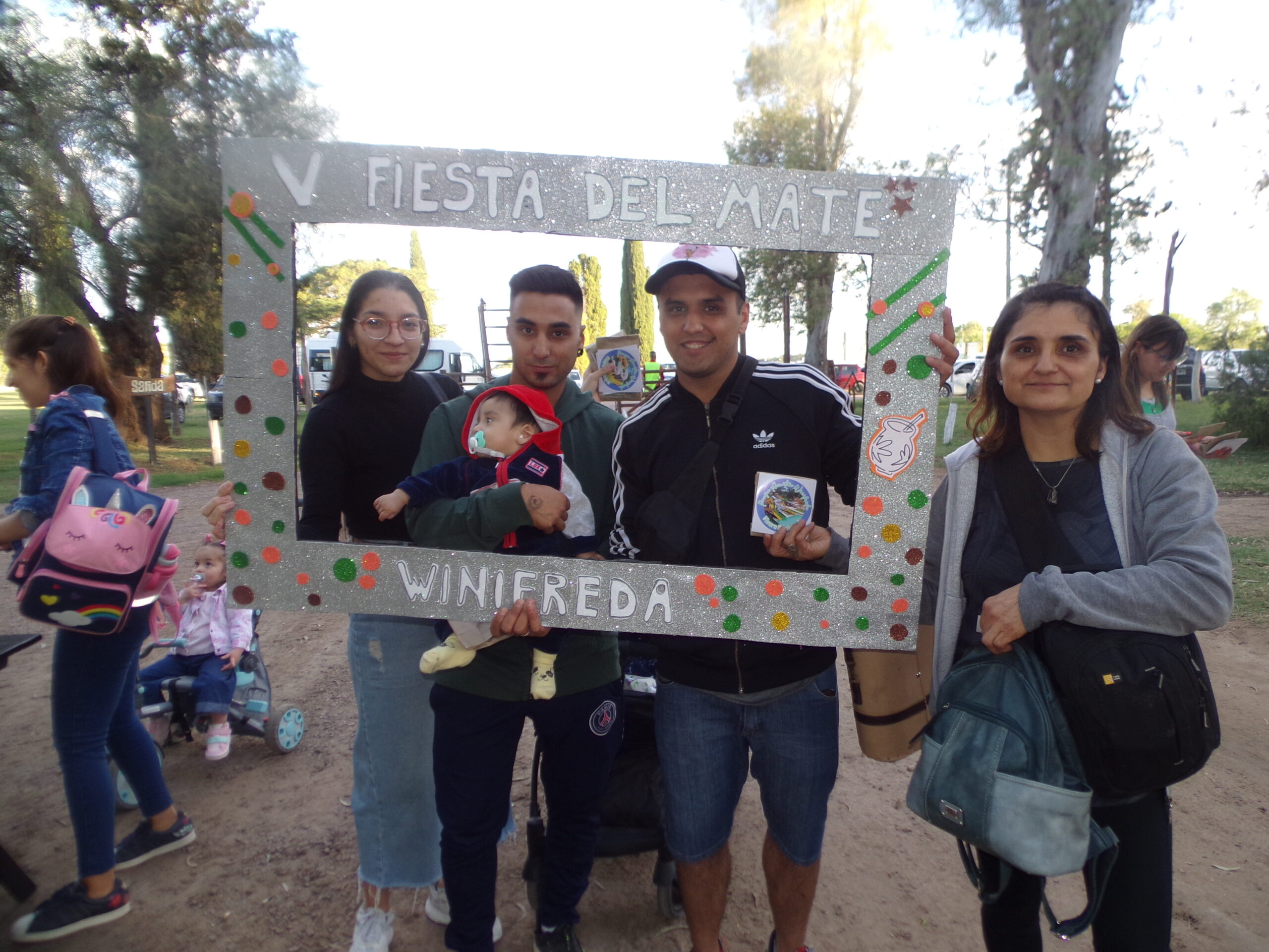 Familias con sus equipos de mate en la tradicional fiesta winifredense.