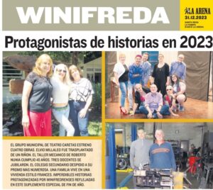Tapa del suplemento especial publicado en el diario La Arena el 31 de diciembre de 2023. Sus páginas reflejan a winifredenses protagonistas de imperdibles historias en 2023. Además de numerosas salutaciones de comercios e instituciones. Una producción periodística única de una localidad pampeana. El grupo municipal de teatro Caretas estrenó cuatro obras. Grupo Caretas: «Winifreda … Sigue leyendo Winifredenses protagonistas de imperdibles historias