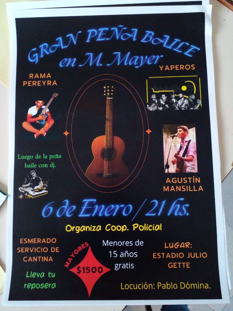 La Cooperadora Policial de Mauricio Mayer organiza una peña folclórica con baile para el fin de semana venidero.