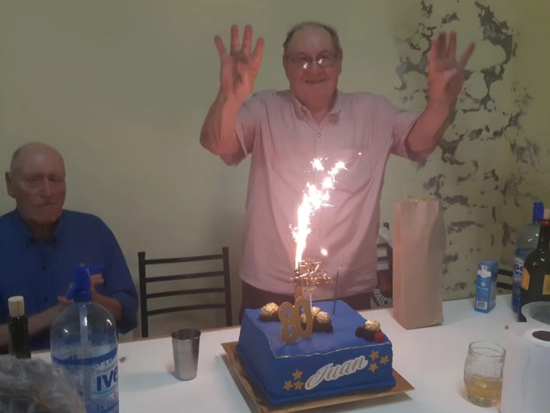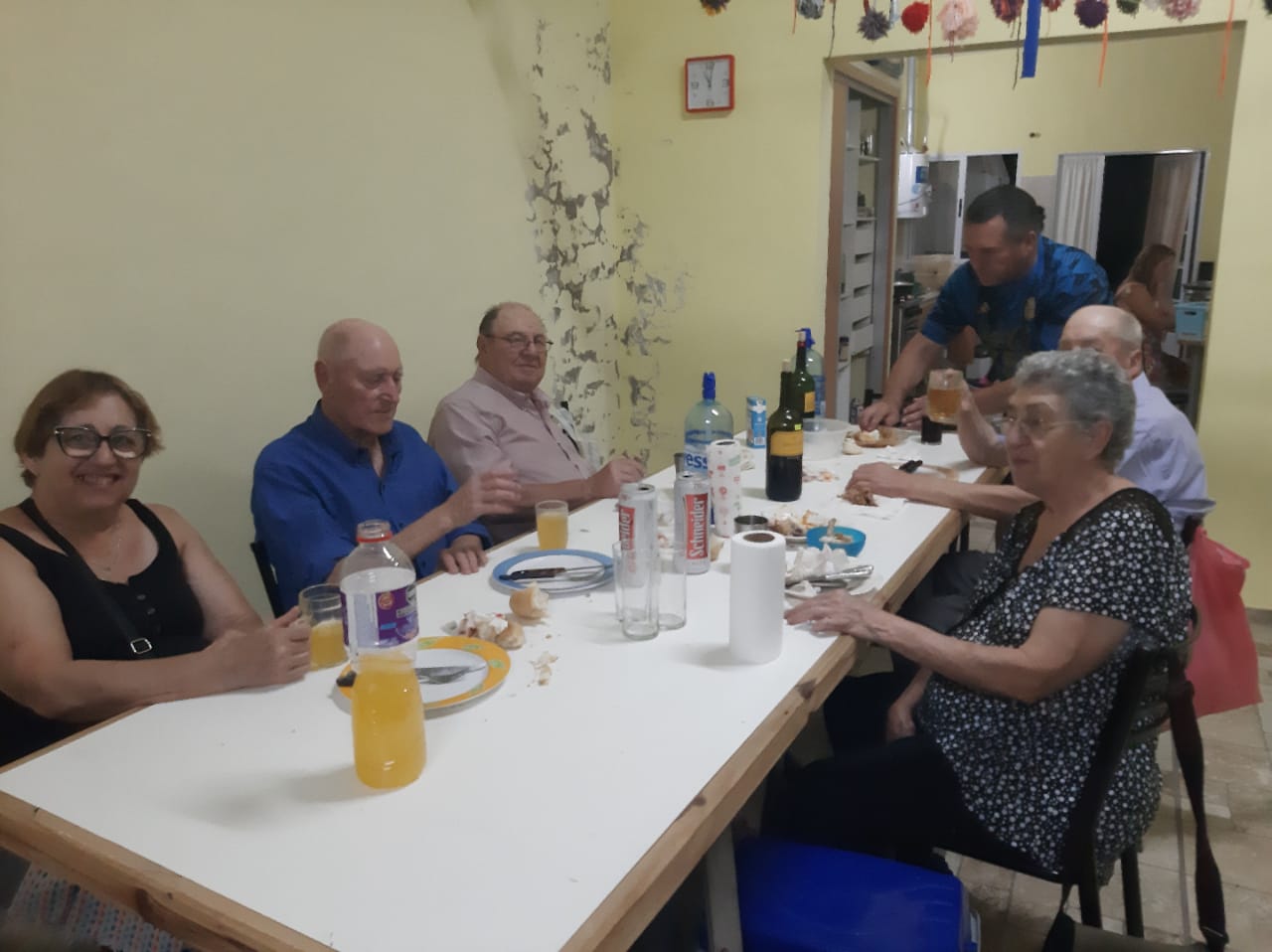 El momento de los postres fue muy emotivo porque los presentes le acercaron una torta a Juan Valentín Haag y le cantaron el feliz cumpleaños ya que cumplía 80 años. El cumpleañero no pudo evitar emocionarse frente al gesto de empatía de sus amigas y amigos. Sonriente levantó sus dos manos haciendo el número 4 con sus dedos.