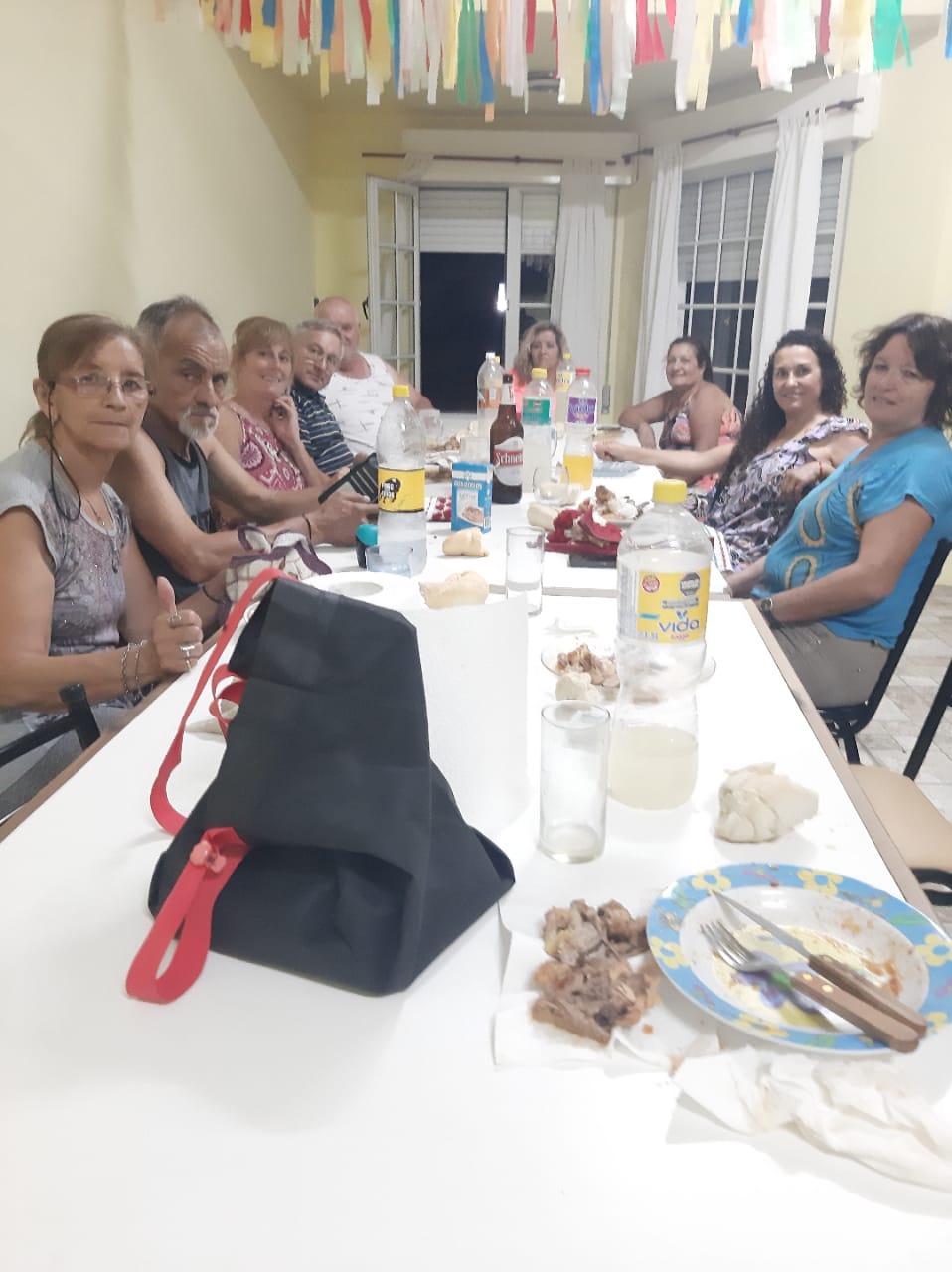 Durante el encuentro, vecinas y vecinos compartieron una rica cena. El plato principal fue pollo al disco, que fue preparado por el intendente Juan Krank. El jefe comunal además hizo de mozo ya que sirvió la comida.