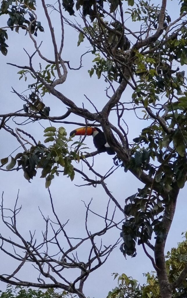 Alambradores winifredenses divisaron este martes a la mañana en la zona rural un ave muy peculiar. Lograron fotografiarla cuando estaba posada en la copa de un árbol. Están convencidos que se trataba de un tucán.