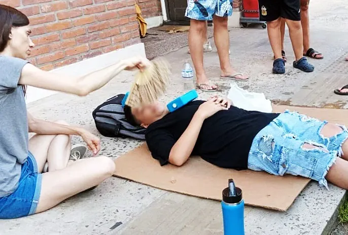De acuerdo a imágenes que circulan en redes sociales, las personas descompuestas debieron ser recostadas en el piso y recibir agua con botellas y aire con improvisados abanicos.
