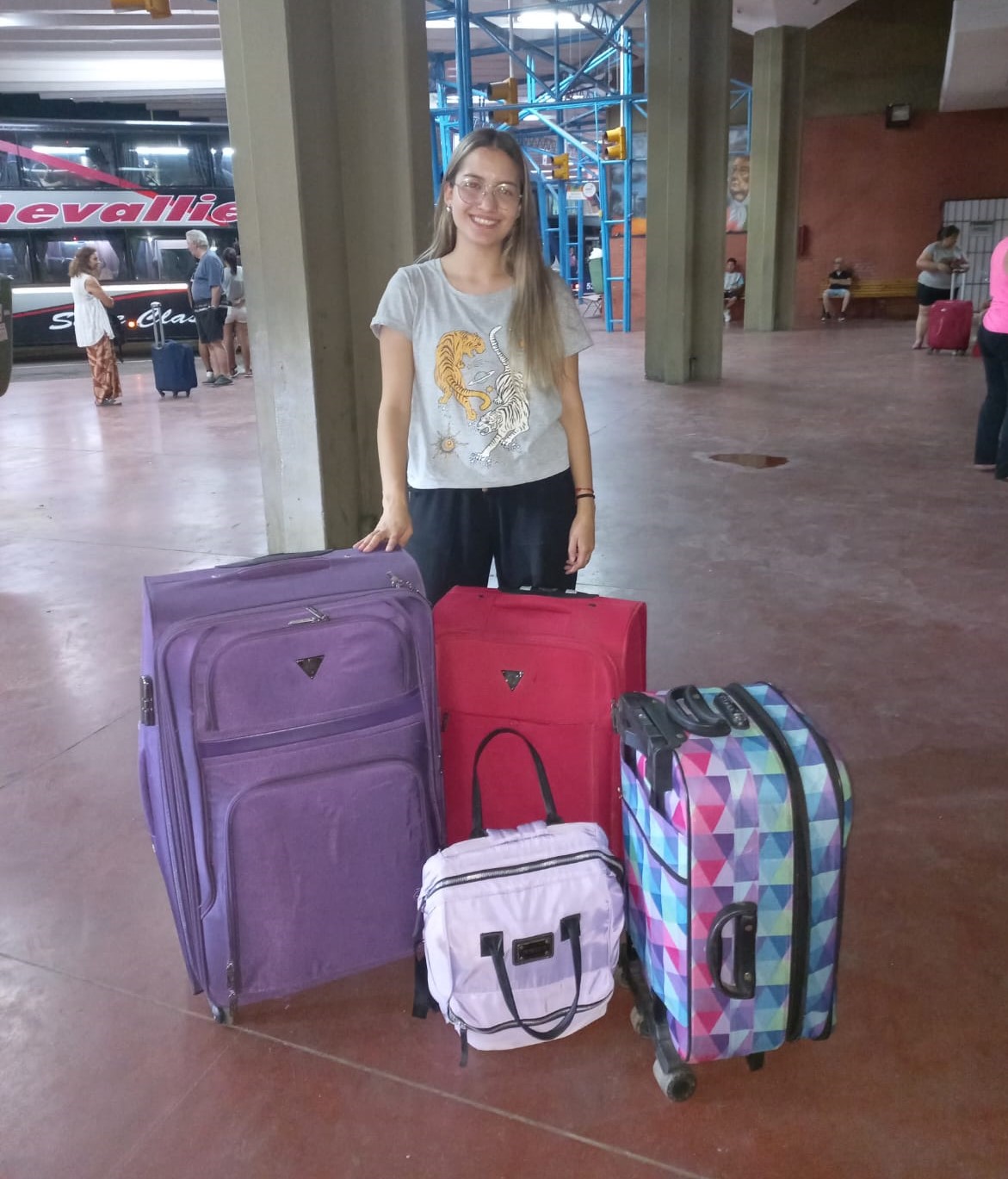 Delfina Pagella, en la terminal de Santa Rosa, ya está en Bolivia.