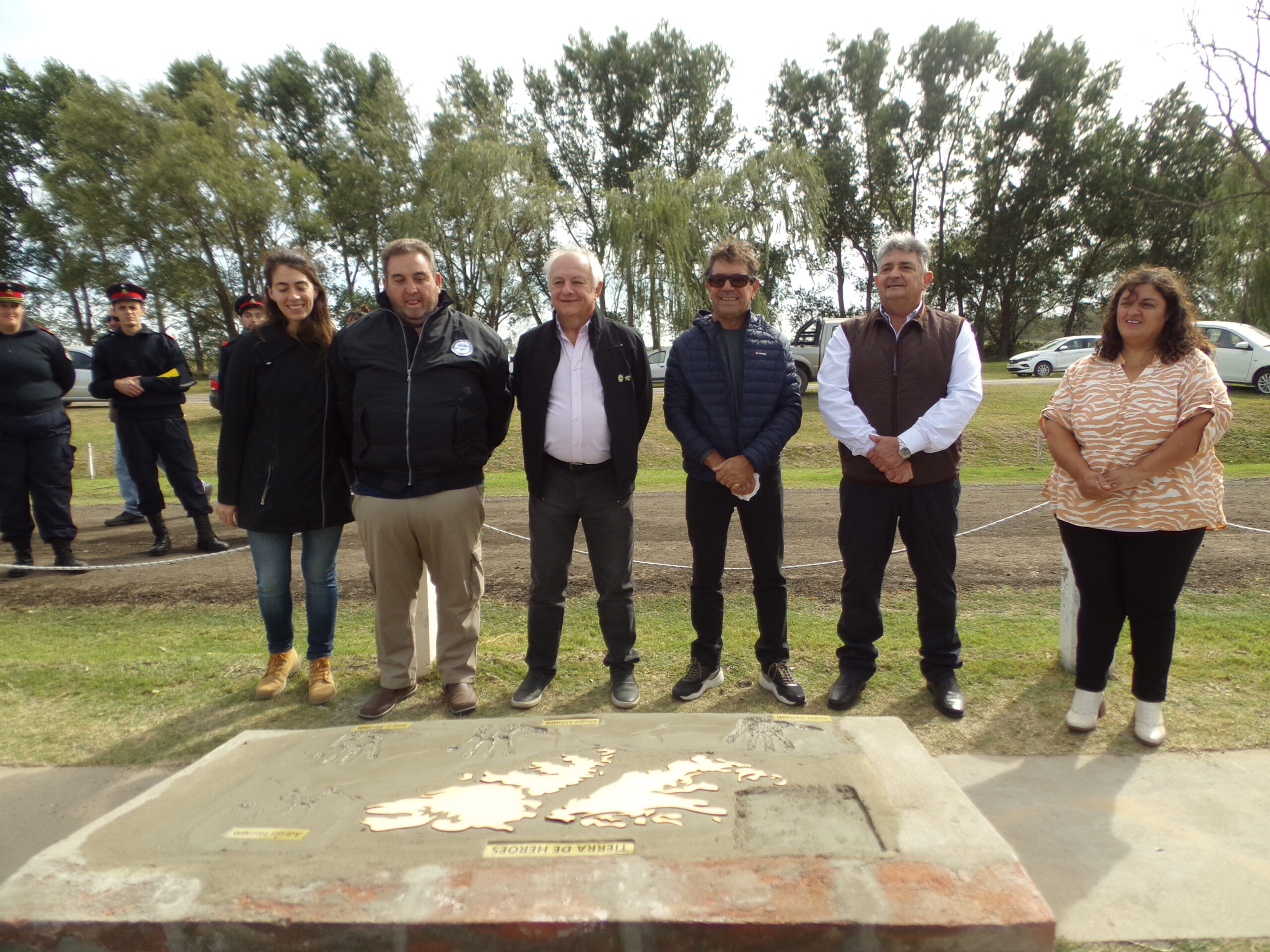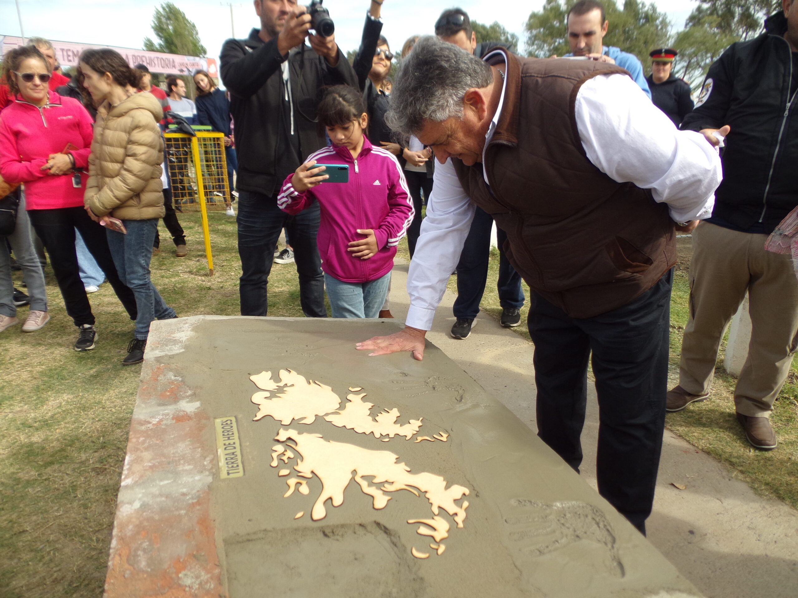 Miranda y los demás excombatientes castenses colocaron su mano derecha en un monumento que tenía la imagen de las islas y cemento fresco, con la intención de «dejar por siempre su huella en esta plazoleta que con tanto cariño y sentimiento se creó en homenaje a ellos», destacó la locutora del acto.
