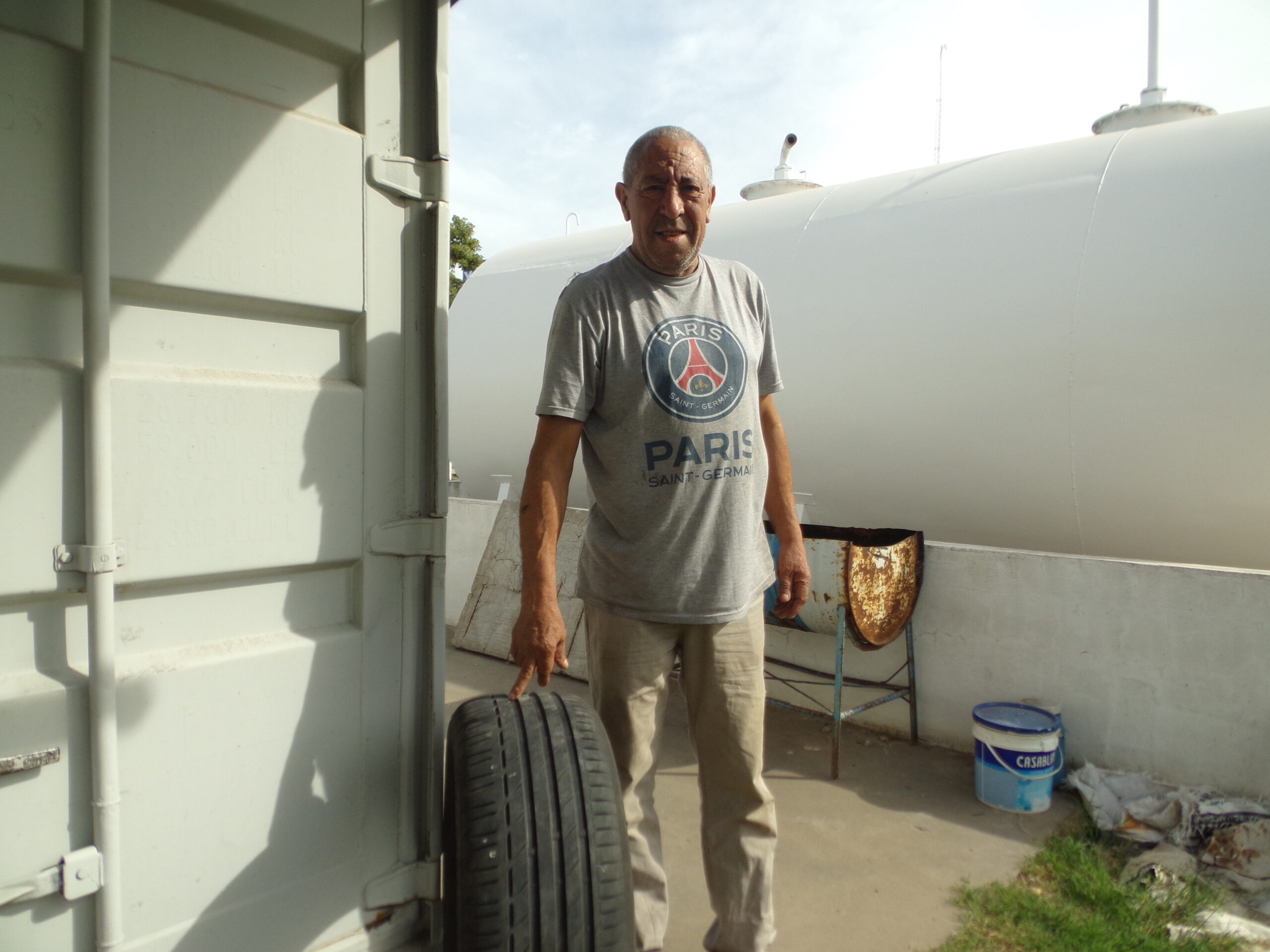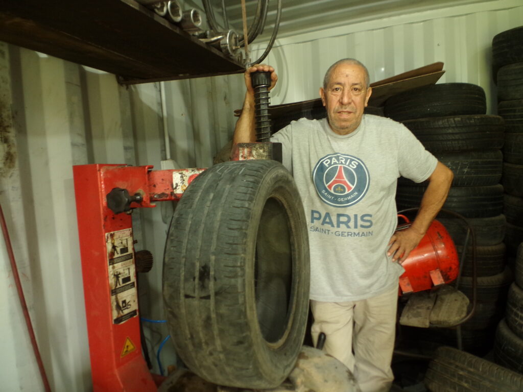 Desde hace tres años tiene su gomería montada dentro de un conteiner facilitado por los dueños de la estación. En esa estructura guarda sus herramientas, entre otras una desarmadora de neumáticos, criquet y pistola neumáticos. «Hasta el año pasado atendía de forma presencial permanente, ahora voy cuando me llaman al celular. He salido de noche y regresado a casa a las 2 de la madrugada», confió. Ante una pregunta puntual estimó que en casi cuarenta años de carrera «reparé más de 100.000 neumáticos».