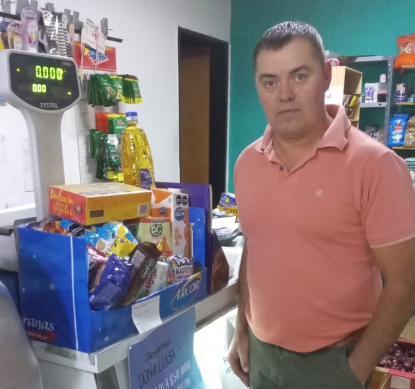 En el comercio de Lucas Weigun estuvo presente Roque Falon Nacuzi, empleado de la distribuidora que comercializa en la provincia los productos alimenticios elaborados por la empresa multinacional.
