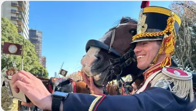 Imagen de granadero con caballo sonriente es furor en redes