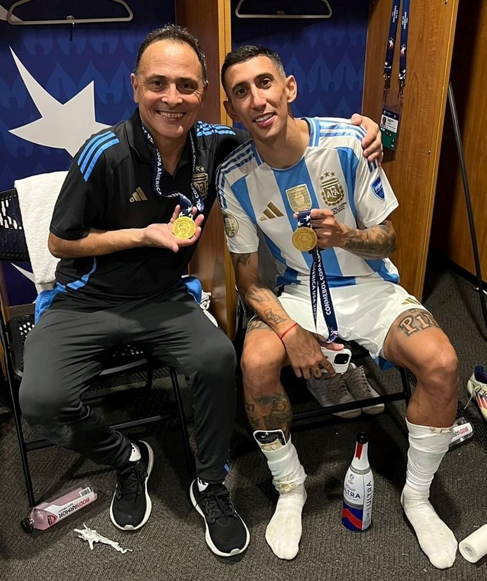 Anoche fue quien atendió primero a Lisandro Martínez y después a Lionel Messi dentro de la cancha cuando el capitán sufrió un esguince y tuvo que ser reemplazado. Al término del partido, se sumó a los festejos y en sus redes sociales compartió imágenes acompañado de la Copa junto a «Dibu» Martínez y Ángel Di María.