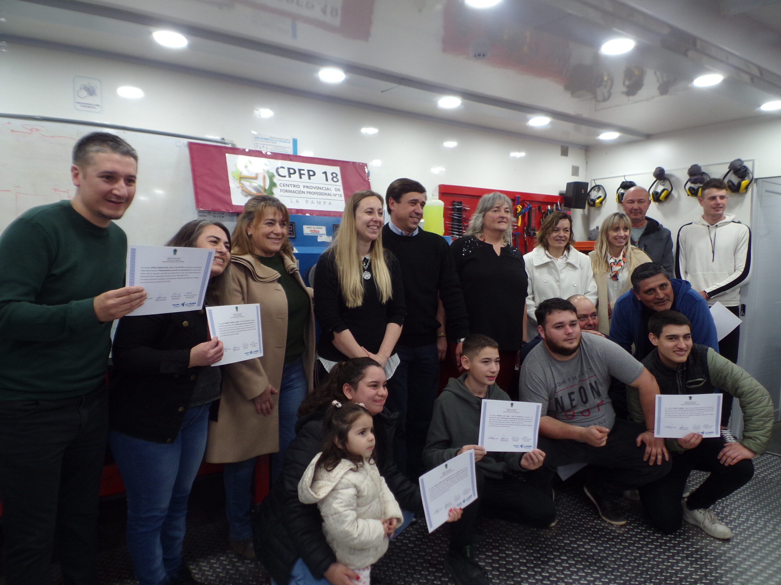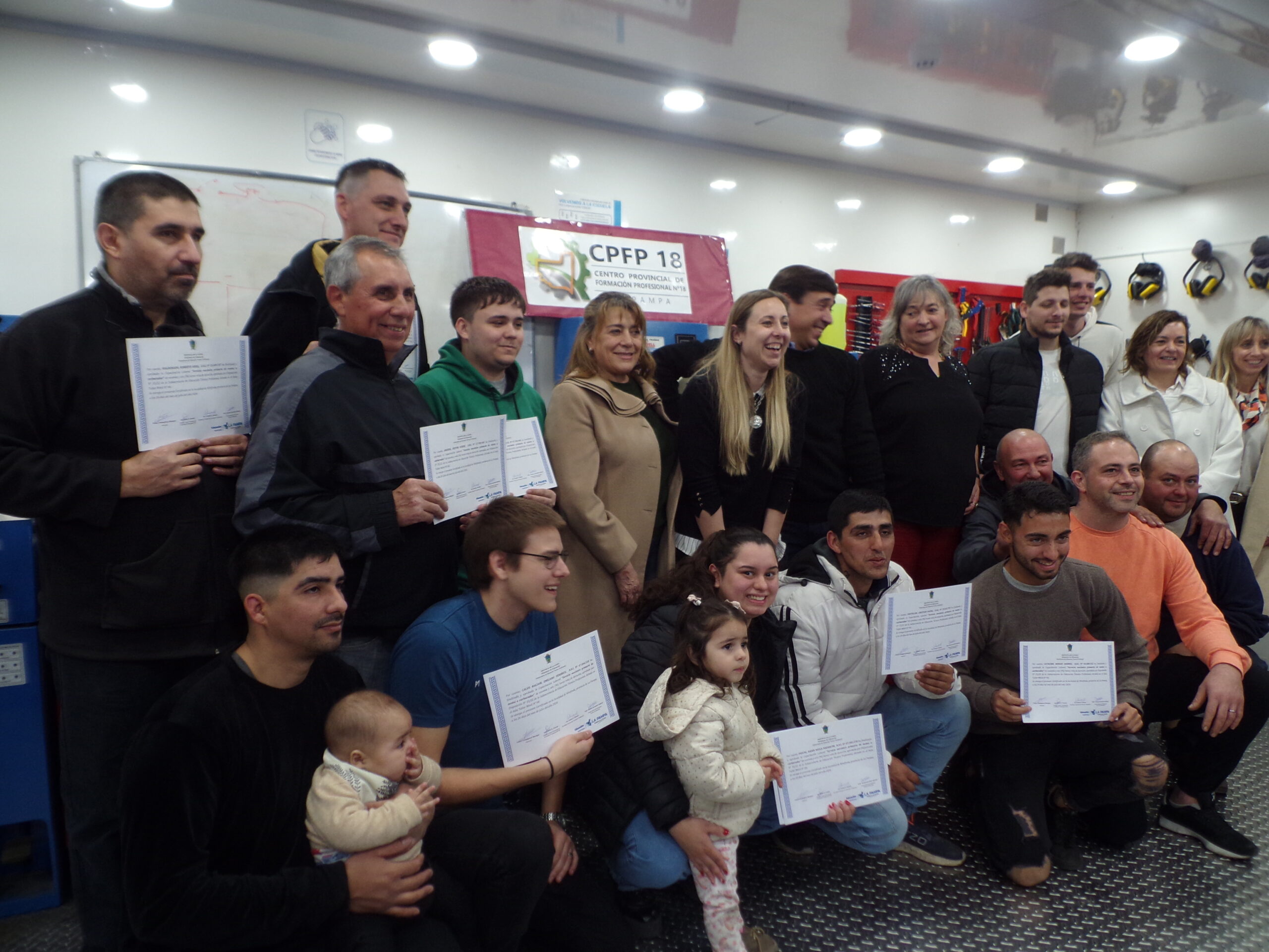 Del acto, desarrollado dentro del aula, participaron la subsecretaria de Educación Técnico Profesional, Daiana Schapert Berpof; el director del Centro Provincial de Formación Profesional N° 18, Dante Cuevas; la intendenta Adriana García; la directora del Secundario Cecilia Chaves, la vicedirectora Carina Bertozzi, demás autoridades provinciales y municipales más el grupo de cursantes.