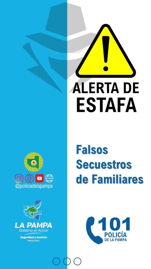 La Policía de La Pampa advirtió sobre un incremento de casos bajo la modalidad de estafas conocidas popularmente como “secuestros virtuales”. En estos casos, las víctimas reciben llamadas telefónicas donde se les informa falsamente que un familiar ha sido secuestrado, exigiendo el pago de dinero, joyas u otros objetos de valor para liberarlo. Otra modalidad […]
