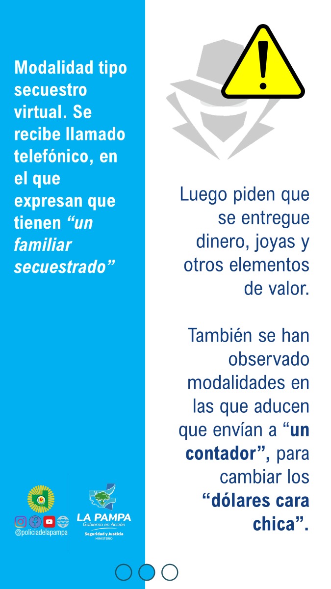 La Policía de La Pampa advirtió sobre un incremento de casos bajo la modalidad de estafas conocidas popularmente como “secuestros virtuales”.