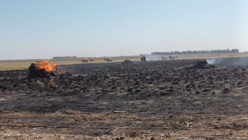 Una rotoenfardadora tuvo un desperfecto mecánico y provocó un voraz incendio en la zona rural de Colonia Barón. Las llamas quemaron 300 rollos de pasto y unas 200 hectáreas. El siniestro dejó una pérdida económica millonaria para el dueño de la máquina agrícola, el contratista rural Ariel Weigum de Winifreda. En diálogo con Infowini, Weigum … Sigue leyendo Winifredense con pérdida millonaria por quema de rollos