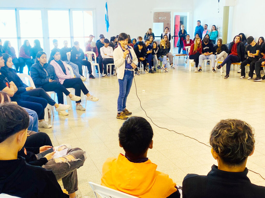 Estudiantes winifredenses recibieron a sus pares santarroseños que forman parte de cooperativas escolares y juntos escucharon en primera persona el testimonio de una víctima del terrorismo de Estado. Luego, compartieron un taller de cooperativismo escolar.