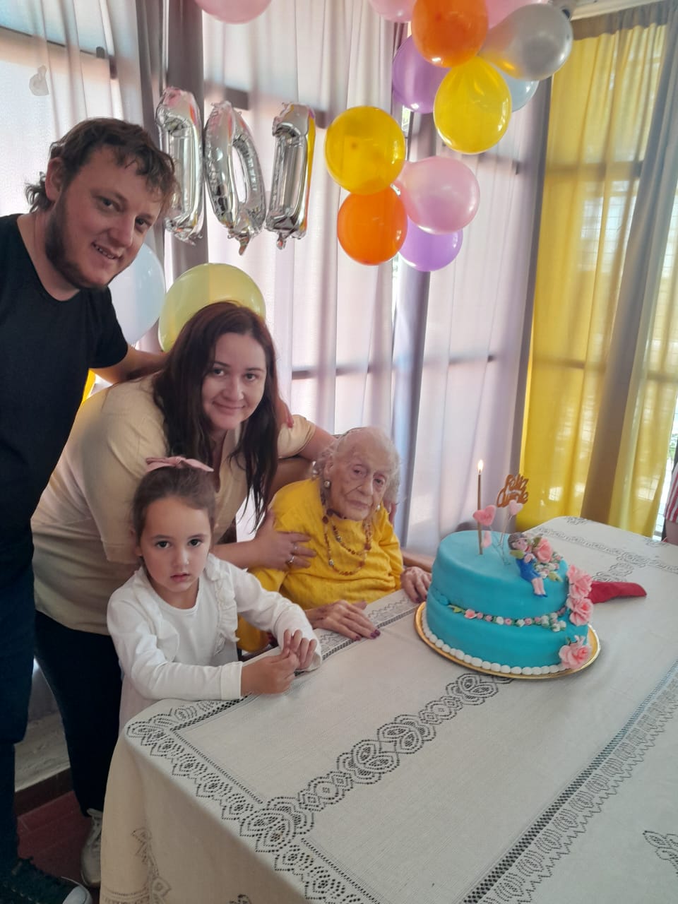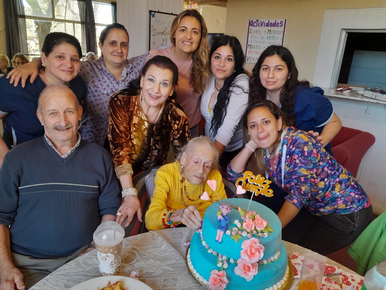 Además de su hija Elsa, a la fiesta también asistieron su yerno Carlos Tueros, su nuera Marta Vicente, sus nietas Natacha y Yanina Araujo -Evi faltó porque rendía su última materia de socióloga en Córdoba-,sus nietos políticos Juan Lell y Diego Saoretti, su bisnietos Lorenzo y Victoria además de la propietaria, el personal y residentes del hogar.