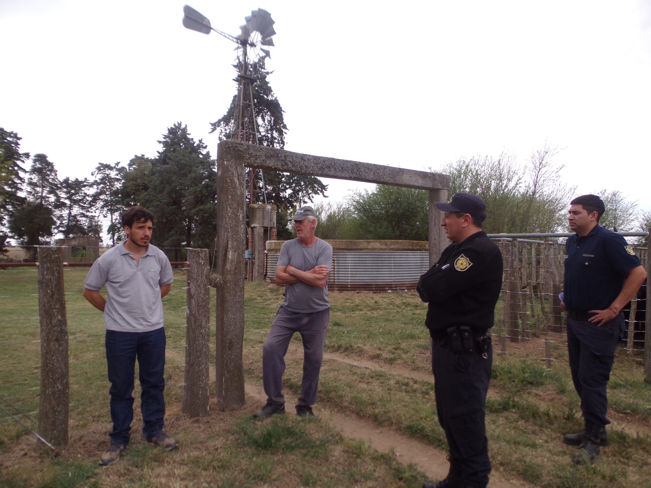 El ganadero en su camioneta y tres policías en una patrulla, entre ellos el jefe de la comisaría Jorge Teves, confluyeron esta tarde en el campo “La Casa”, situado en el Lote XIII, al norte de esta localidad, donde fueron recibidos por su propietario Sergio Javier Berger.