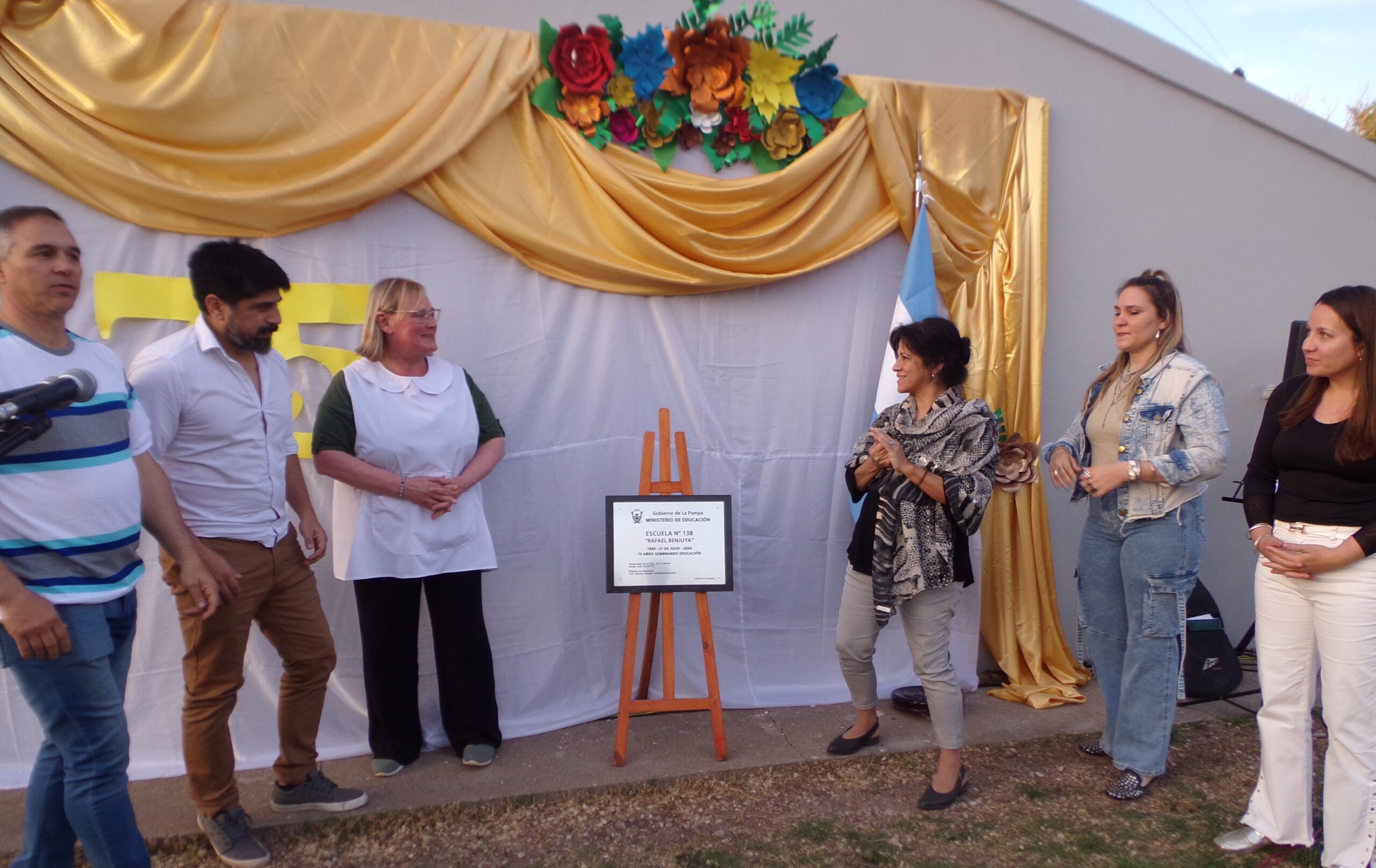 En uno de sus laterales se desarrolló la celebración, que comenzó bajo una agradable tarde soleada. En representación del Ministerio de Educación estuvieron la directora general de Educación Primaria, María Godoy, y la directora de zona 2 de Nivel Inicial, Karina Geijo, acompañadas por el viceintendente a cargo del Ejecutivo Municipal, Franco Prado, ex alumno de la escuela 138, la diputada Romina Mota, concejales, docentes de escuelas de la zona y familias.