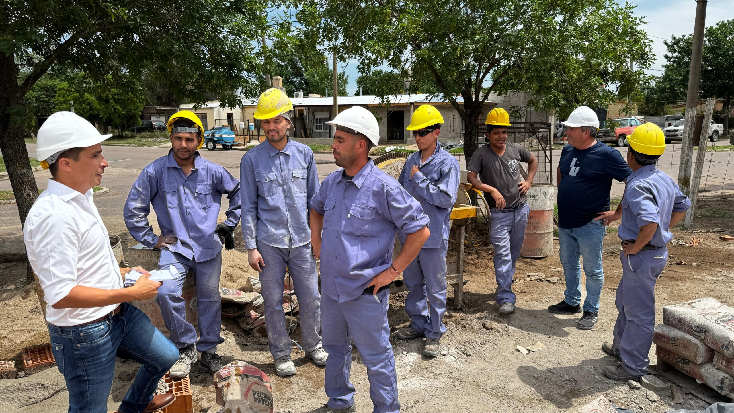 Ministro e intendente con los obreros.
