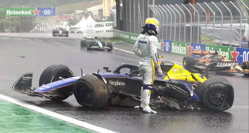 Bajo la lluvia: Colapinto chocó y abandonó el GP de Brasil