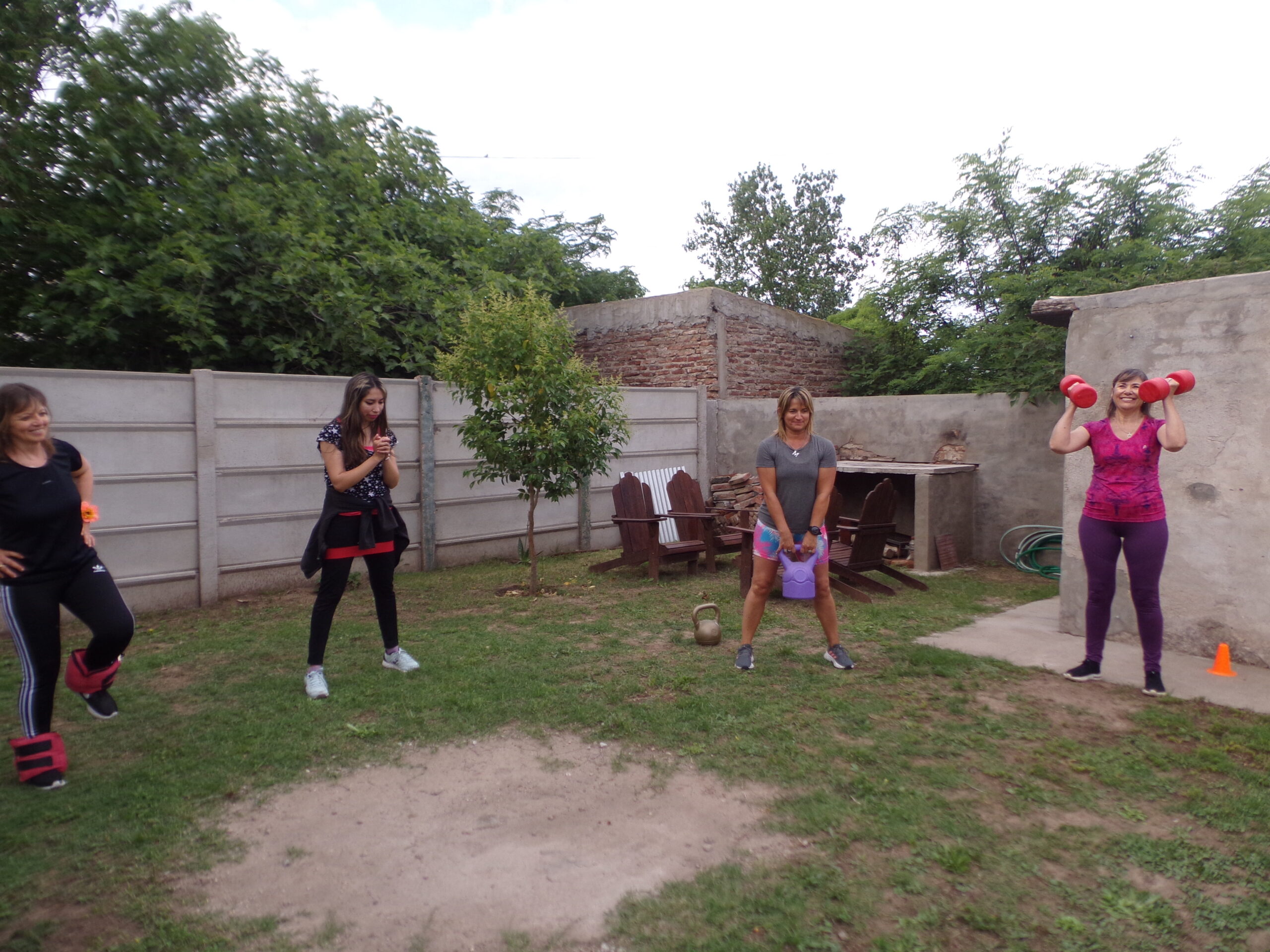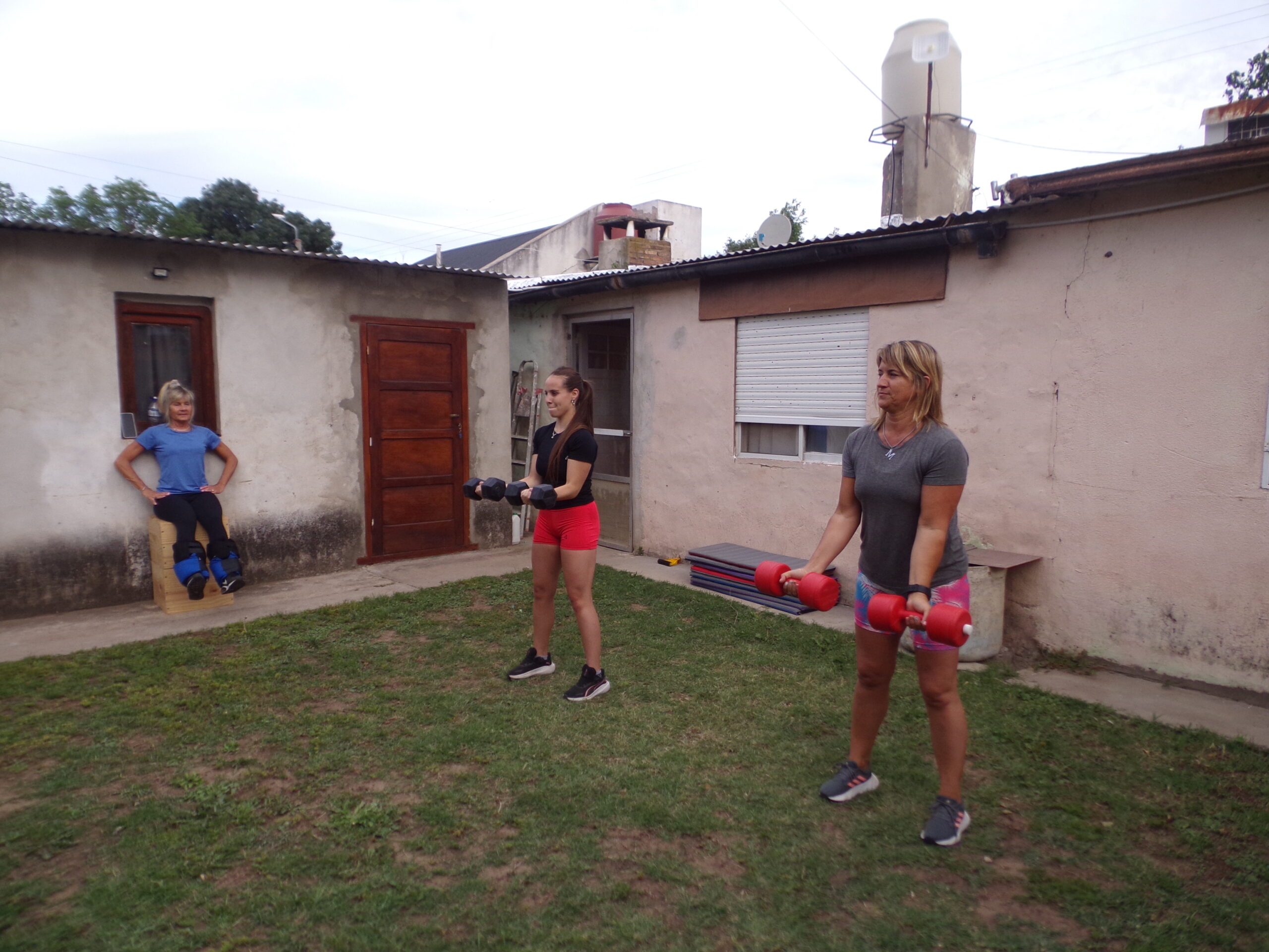 Martes y jueves proporciona ejercicios acuáticos de bajo impacto hasta bailes en el agua en la piscina climatizada cubierta. «Tengo dos horarios: en el primero asisten unas 10 mujeres de Colonia Barón y en el siguiente turno personas de Mayer y Villa Mirasol», precisó. También, le da clases a una mujer de Mayer embarazada de cinco meses. «Los ejercicios en el agua son completamente seguros», afirmó. En el patio de su casa continúa con los entrenamientos individuales y grupales.