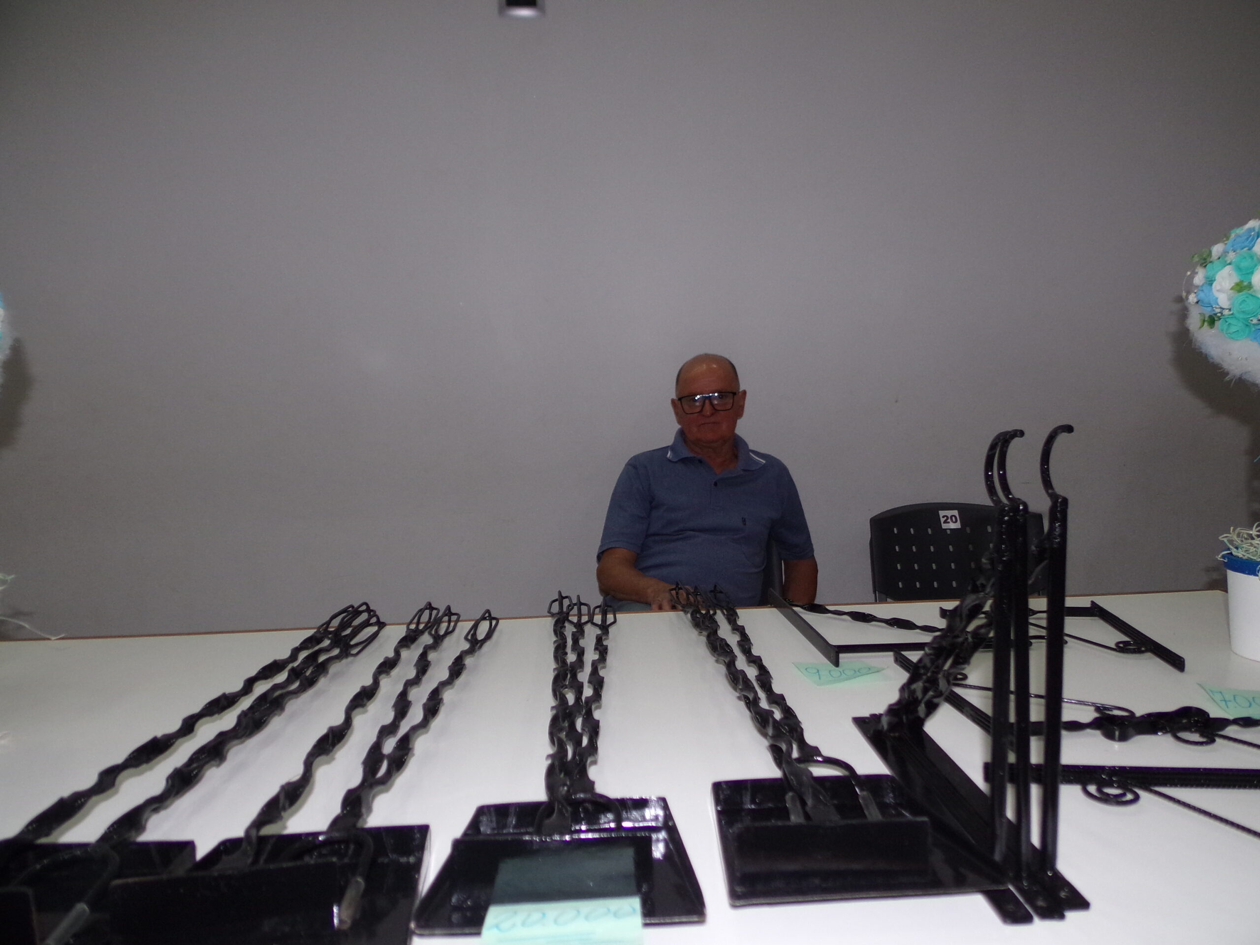La feria del regalo fue un espacio dedicado a artesanos y emprendedores locales quienes exhibieron y ofrecieron sus creativas producciones hechas con diversos materiales. Entre otros, “Nino» Lej mostró sus artesanías en hierro. El vecino, con sus propias manos, fabrica palas y rastrillos para las brasas y pinches para la carne asada además de ménsulas para colgar macetas en la pared.