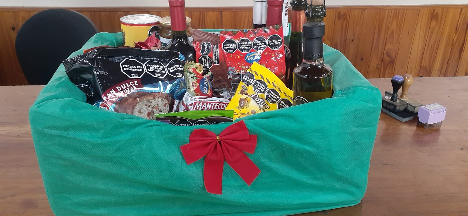 Foto: La canasta navideña que sorteará la cooperadora policial.