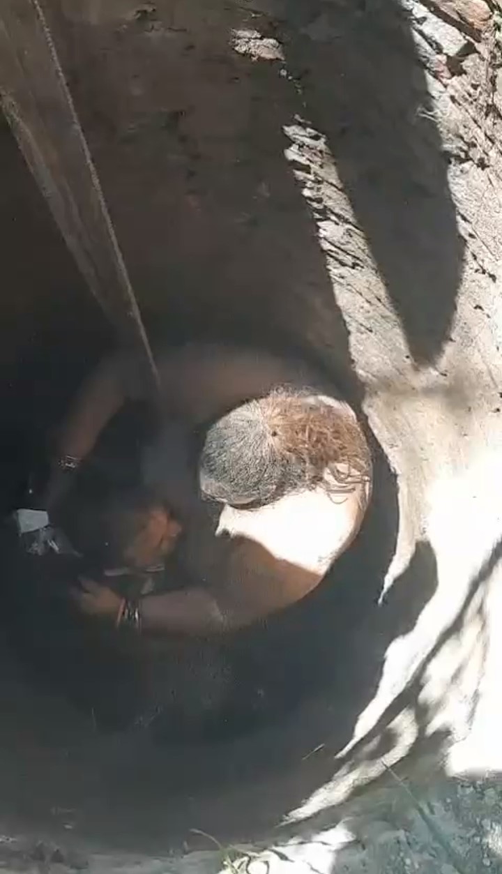 Luego, solicitaron la presencia urgente de bomberos voluntarios y personal del hospital. Llegaron inmediatamente. El bombero Roberto Sacco descendió al pozo sujetado por un arnés y el cable del malacate de la unidad móvil. Cuando llegó al fondo, llevó a cabo las maniobras de rescate y le hablaba a la chica para que mantuviera la calma. Desde arriba, los fueron elevando lentamente con el malacate y tirando de la soga.