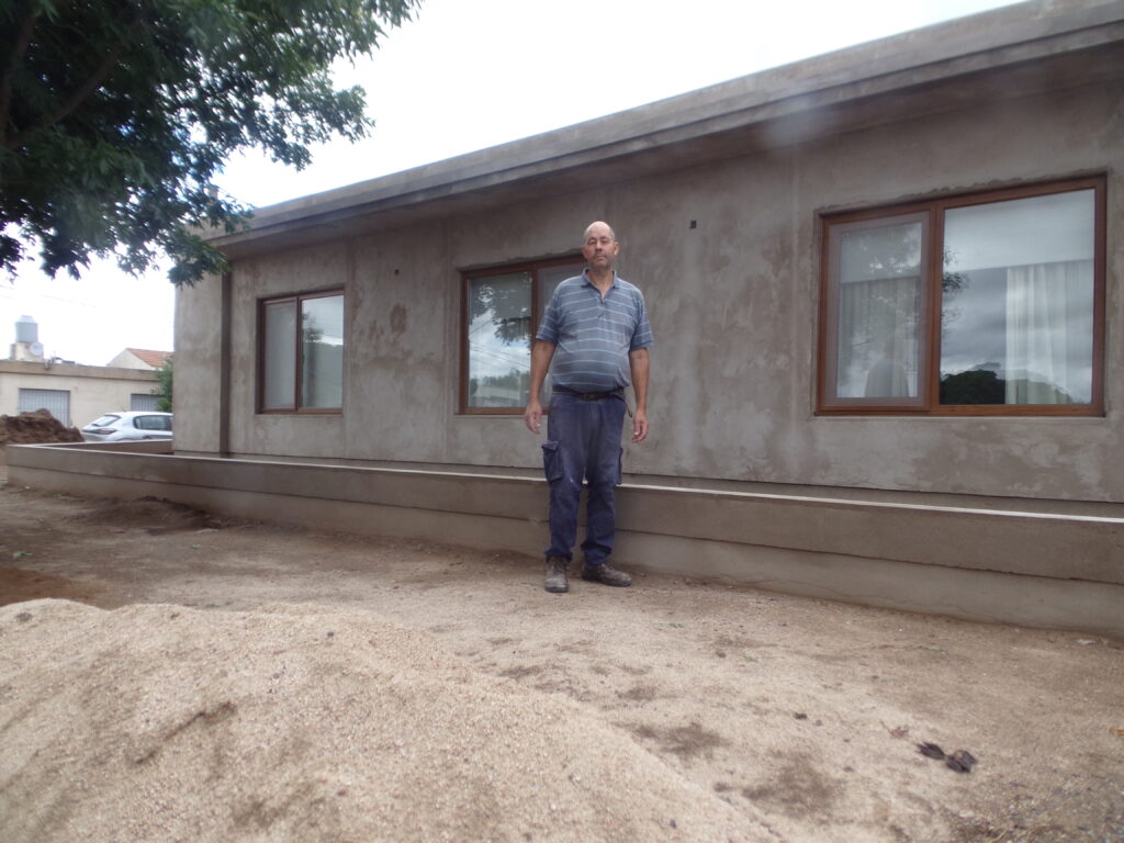 Foto: Edgardo Ressler en frente de vivienda que construye.