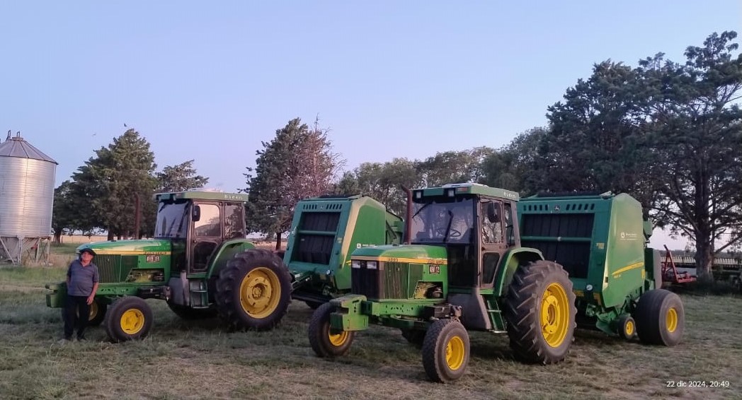 «Tenemos una empresa chica, pero está en marcha con maquinaria de última tecnología y tiene una importante cartera de clientes. Hoy contamos con cinco tractores, dos rotoenfardadoras de último modelo marca John Deere con corte, rastrillo para juntar hileras, medidores de humedad, ofrecen servicio completo», puntualizó.