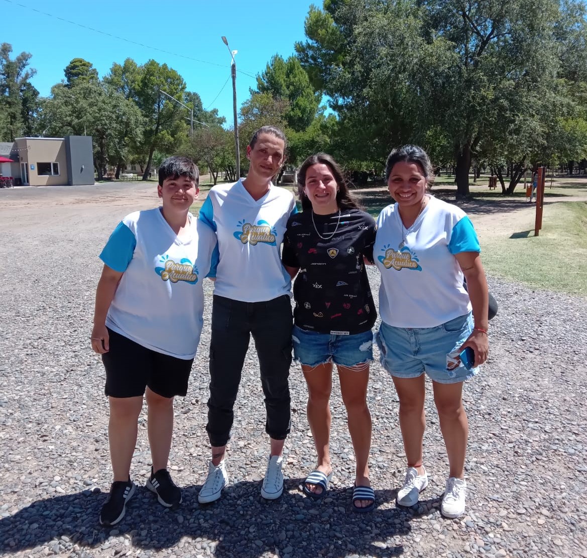 Foto: Romina Nuñez con trabajadoras del Parque Acuático.