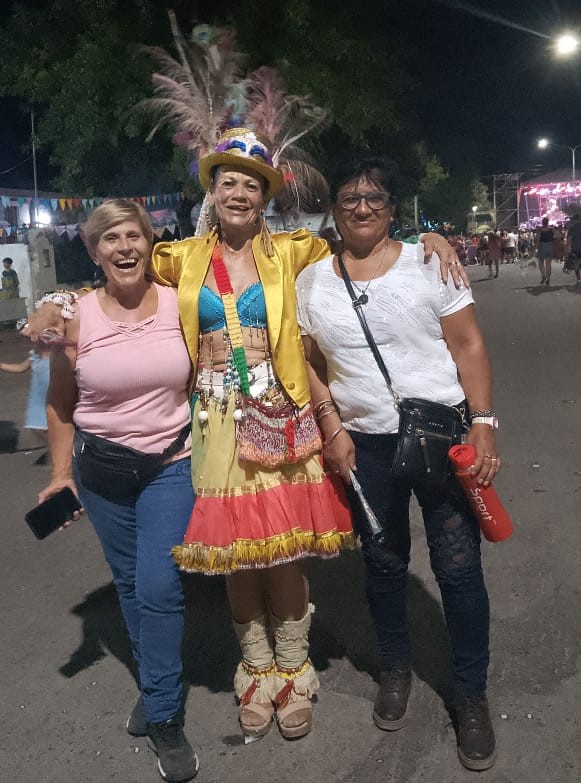 La vecina winifredense Dora Bravo con sus amigas viajó el domingo a la localidad norteña, de donde es oriunda, para participar de la fiesta carnestolenda y fue una de las protagonistas de la noche.