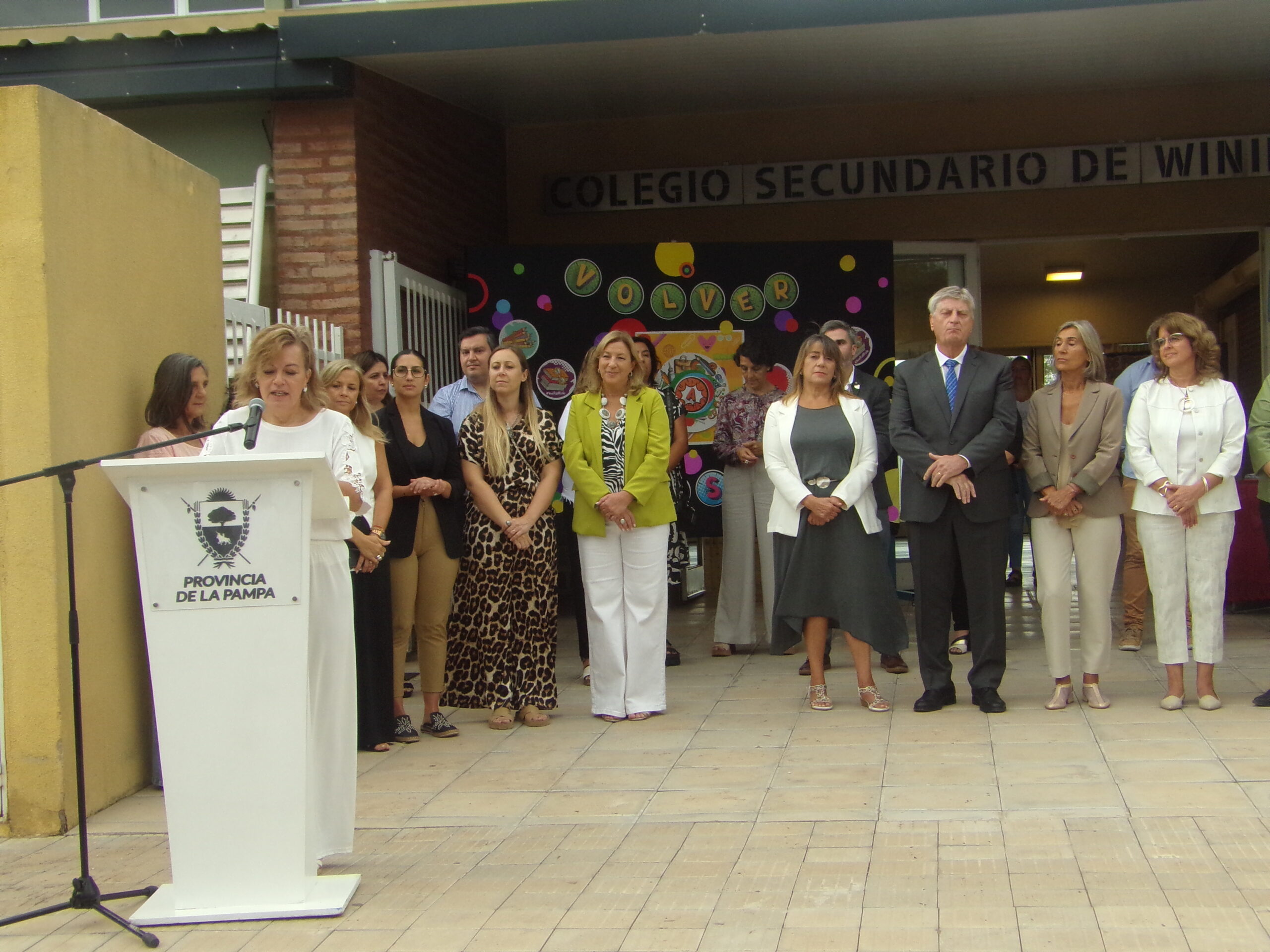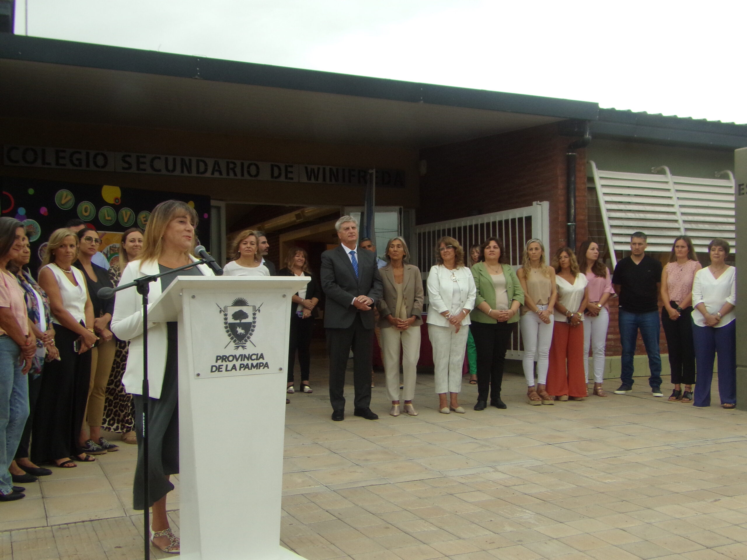 La intendenta Adriana García expresó su satisfacción por la elección de Winifreda como sede del acto oficial: «Es un honor para el pueblo que nos hayan elegido para el inicio del ciclo lectivo. La educación es la base de todo el desarrollo», dijo. También, agradeció el apoyo de la cartera educativa provincial: «Gracias por toda la colaboración que hemos recibido del Ministerio de Educación a lo largo de estos años. Siempre nos han dado una mano para hacer cursos, para trabajar, tenemos este colegio que se ha inaugurado, el jardín».