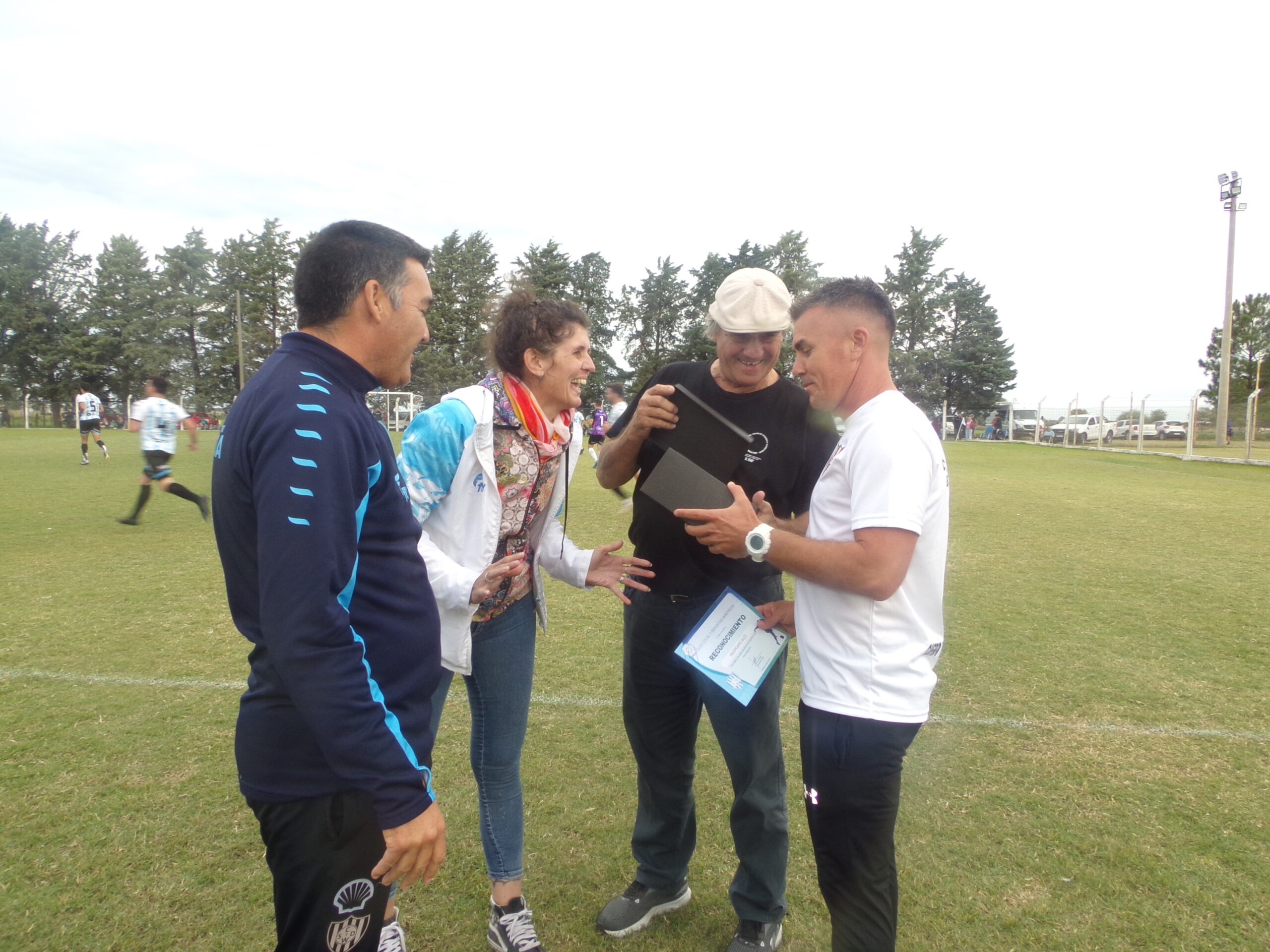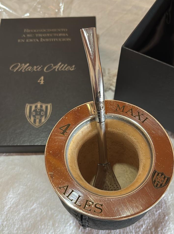 El presidente del club Héctor Jordán, el vicepresidente Mauro Rosa y la tesorera Dorina Russman, le entregaron un diploma, un mate que tiene grabado su nombre, el número 4 de su histórica camiseta y el escudo del club más una bombilla.