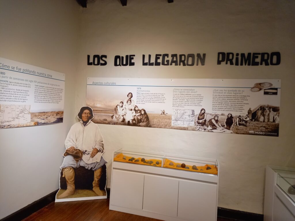 Una de ellas lleva impresa la frase “Los que llegaron primero”. Según explicó la museóloga Claudia Visbeek, esta expresión «hace referencia a los pueblos originarios que arribaron a esta zona de La Pampa en diversas oleadas. Muchos de ellos habitaron lugares como El Guanaco o la laguna conocida como Malal y Loncoché, conformando diferentes asentamientos que existieron antes de la llegada de los inmigrantes».