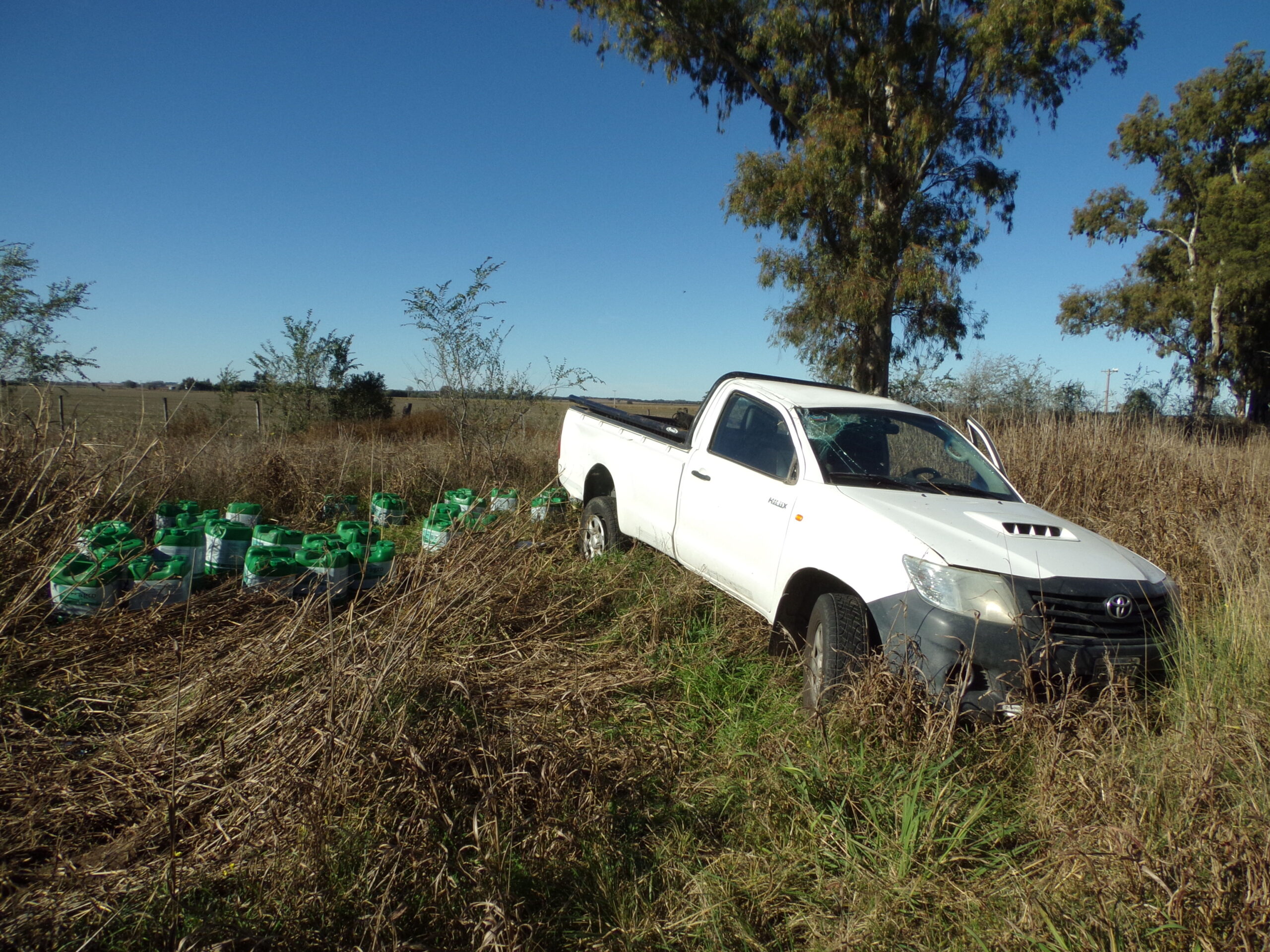 Según fuentes policiales, la conductora se desplazaba en dirección norte-sur a bordo de una Toyota Hilux que transportaba una treintena de envases llenos con un material líquido identificado como herbicida.