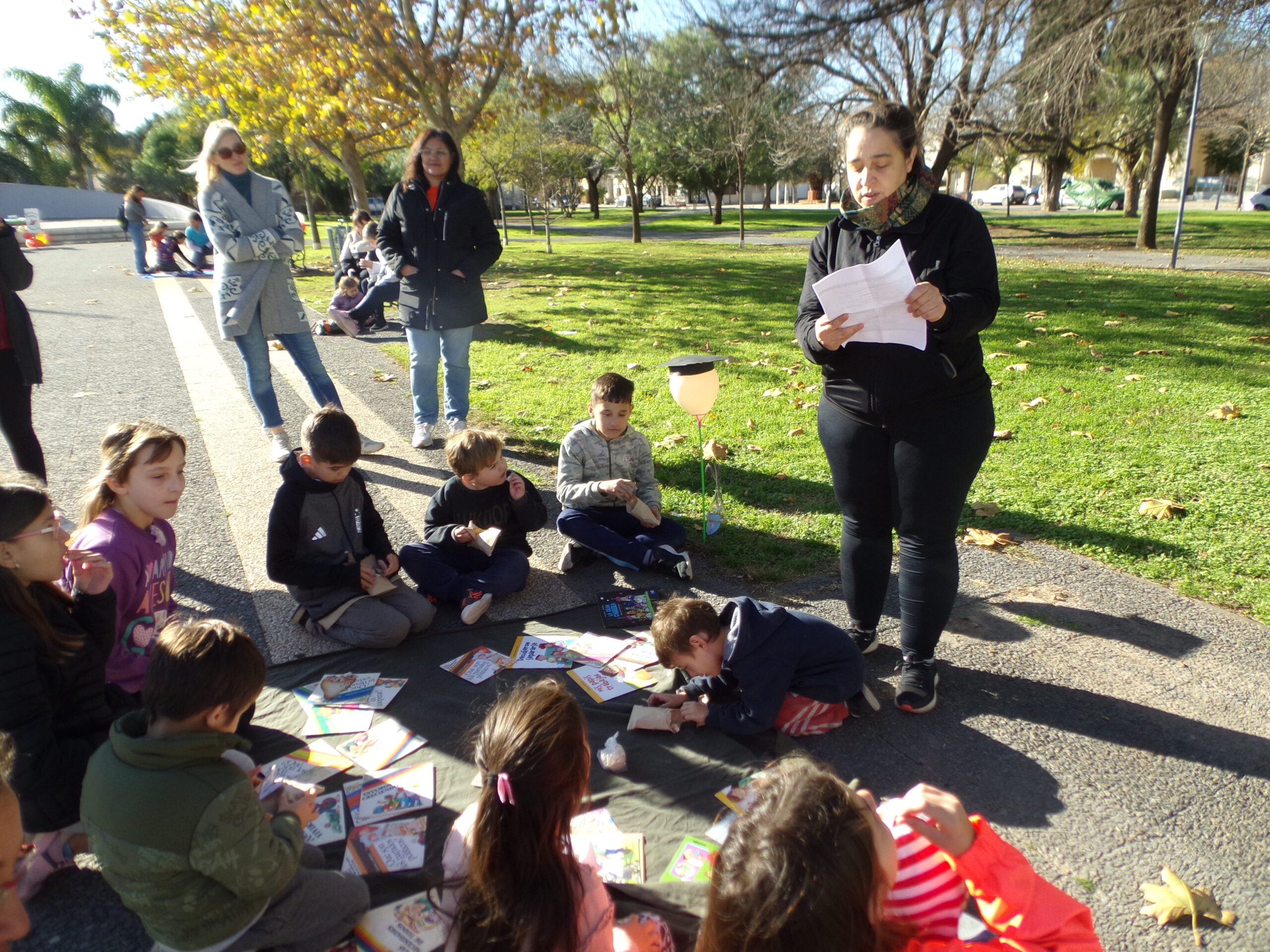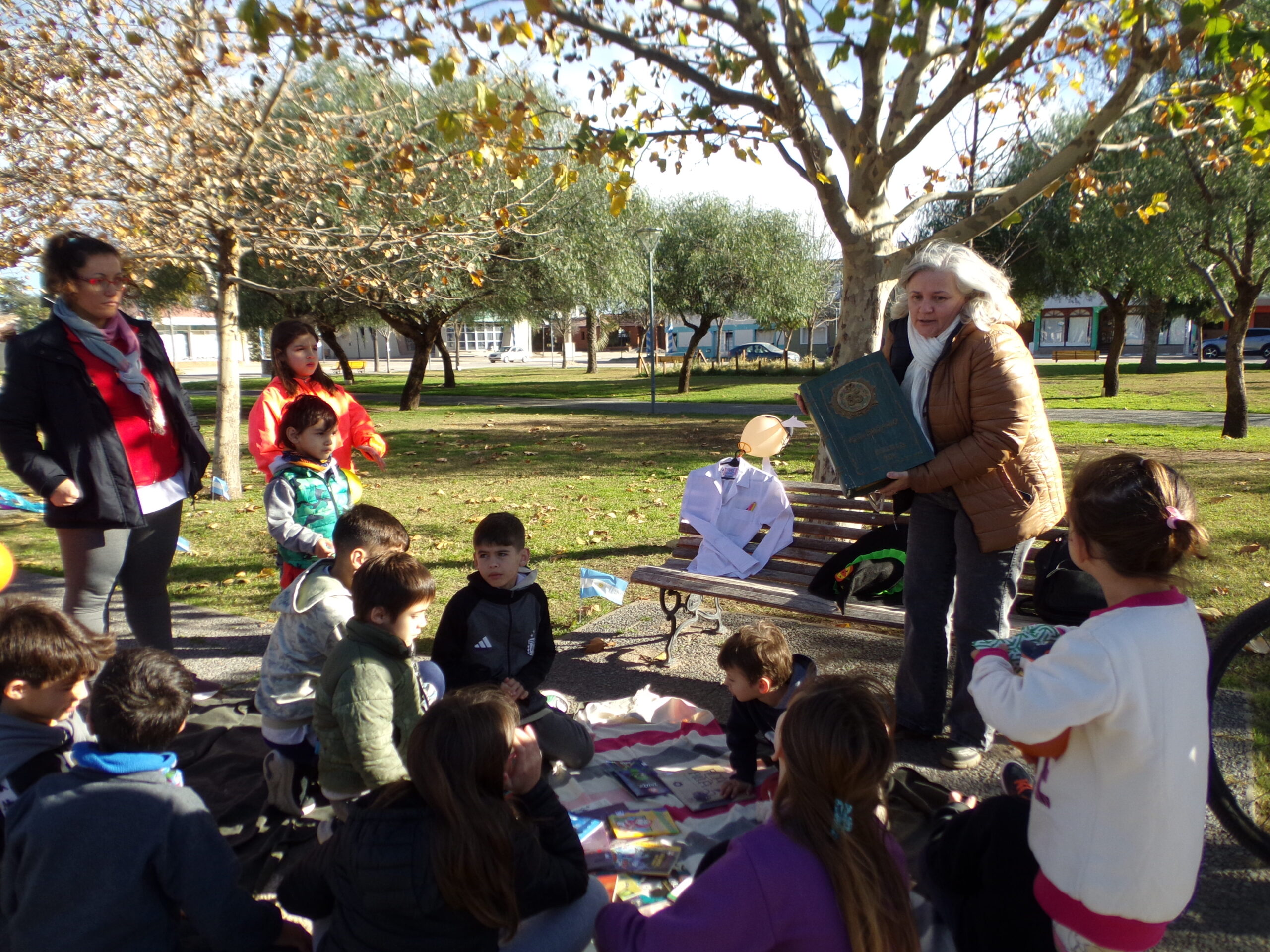 En el sector de la Escuela 104, la directora Lorena Blanco presentó un libro caja considerado «mágico» para la institución. Junto con docentes compartieron diversas lecturas, incluyendo una obra de María Elena Walsh.