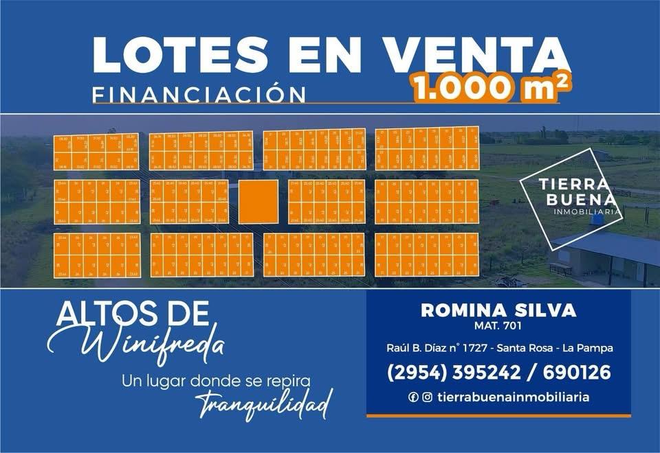 Reveló que el santarroseño Sergio Müller, «es el dueño del loteo Altos de Winifreda, y nuestra inmobiliaria se encarga de la comercialización de los terrenos disponibles. Actualmente tenemos para la venta 46 lotes con excelentes planes de financiación».