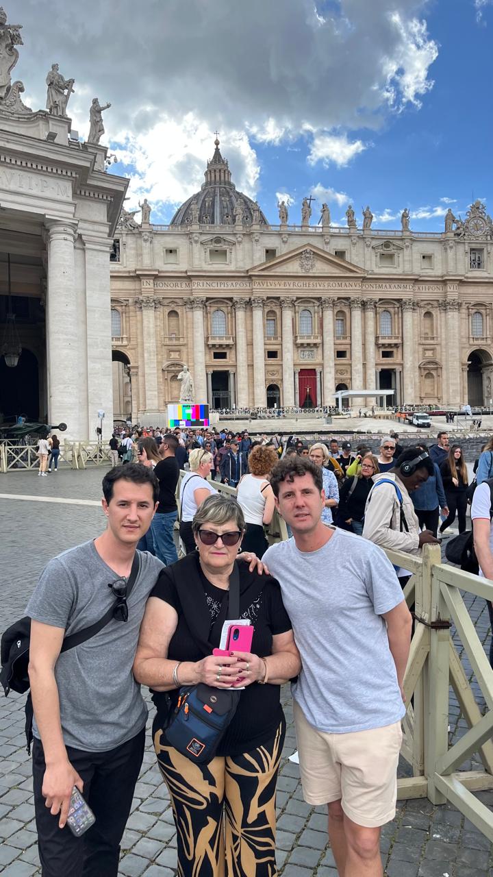 Mientras compartía momentos con su familia, el Vaticano anunciaba que Jorge Bergoglio, el Papa Francisco, había fallecido. «Habíamos reservado un departamento en Roma para visitar el Vaticano y justo cuando viajábamos en tren nos enteramos de su muerte. Al llegar, nos instalamos en el alojamiento y salimos a caminar por la ciudad. Unos días después, hicimos una larga fila para entrar a la Capilla de San Pedro, donde los restos del papa descansaban en un féretro que era expuesto ante los fieles. Dimos toda la vuelta y luego salimos. Había una multitud de personas, pero todo estaba muy bien organizado», recordó.