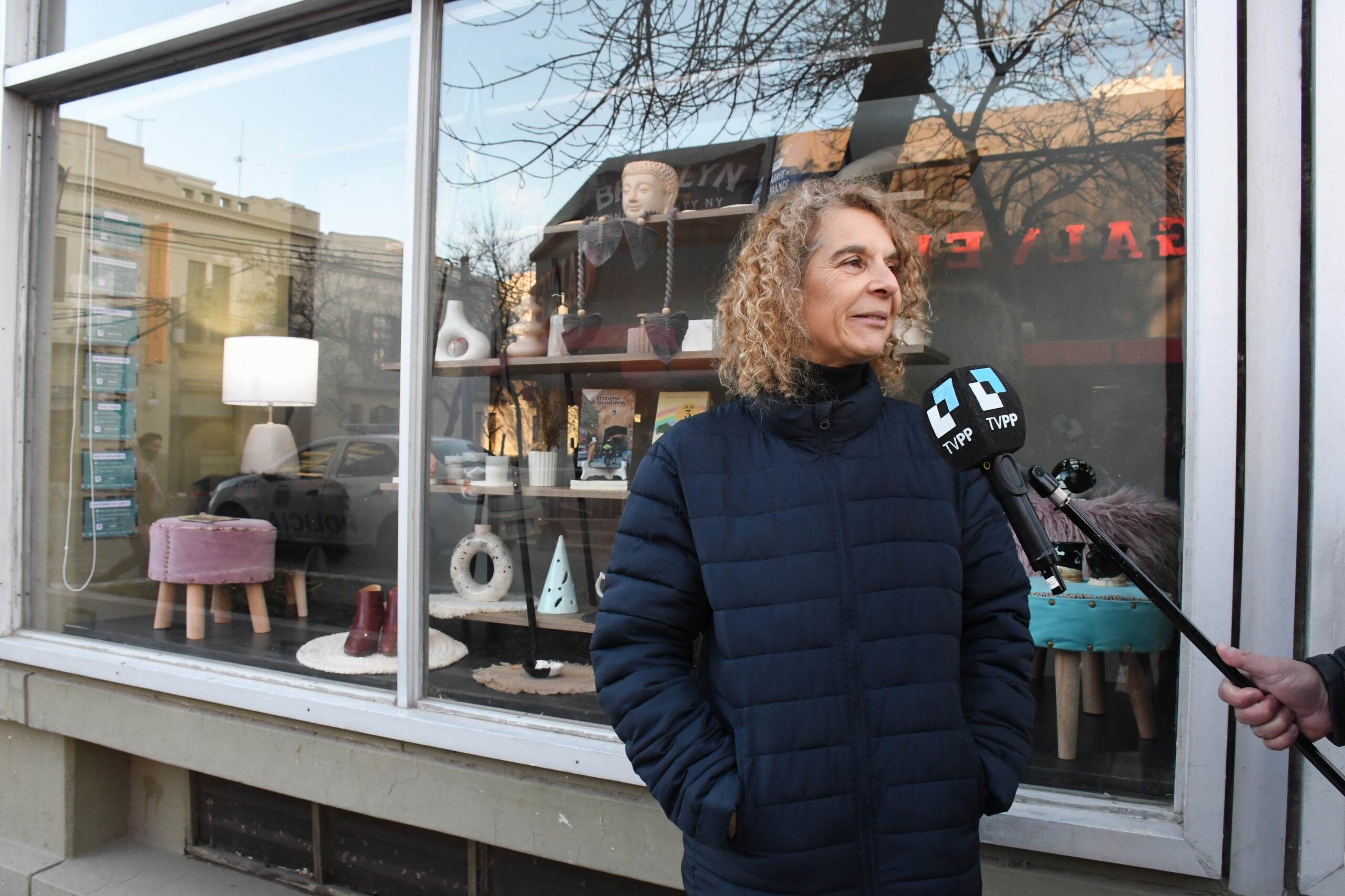 En las vidrieras del Instituto de Seguridad Social, ubicado en la esquina de Pellegrini y 9 de Julio, en Santa Rosa, Susana Besso exhibe sus producciones de tejidos al telar entre los que sobresalen ponchos, chales y chalecos llenos de color, bajo su marca “La Tana”.