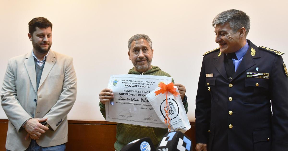 Leandro Villalabeitia, el vecino de Uriburu que la semana pasada desempeñó un papel clave en la recaptura de un peligroso preso que se había escapado de la Unidad 4 en Santa Rosa, recibió un reconocimiento oficial por parte de la Policía.