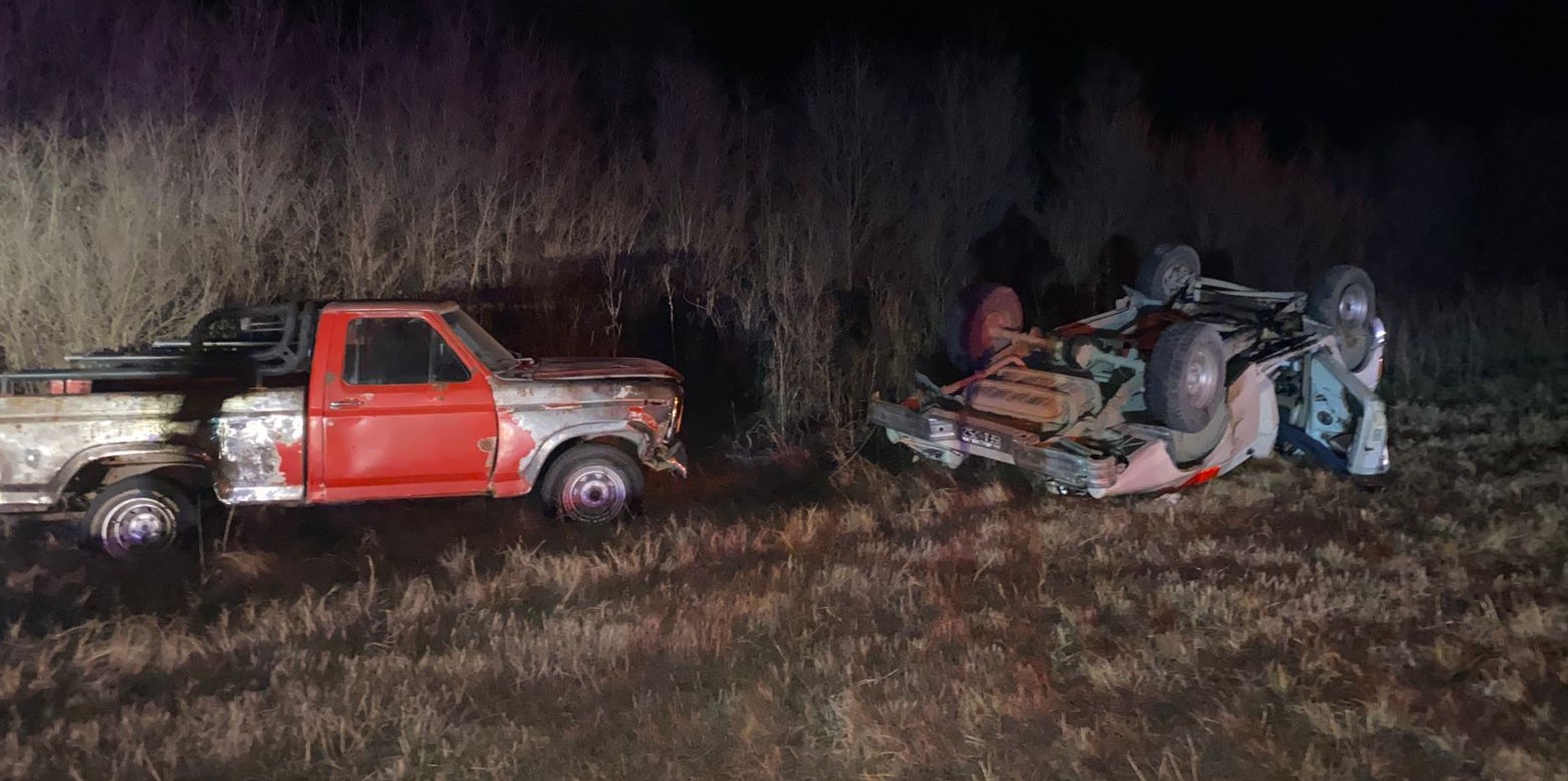 Durante la noche del sábado, una camioneta Ford que remolcaba a otra del mismo modelo realizó un efecto tijera y volcó en la Ruta Nacional 35, a la altura del Guanaco Viejo, cerca de Winifreda.