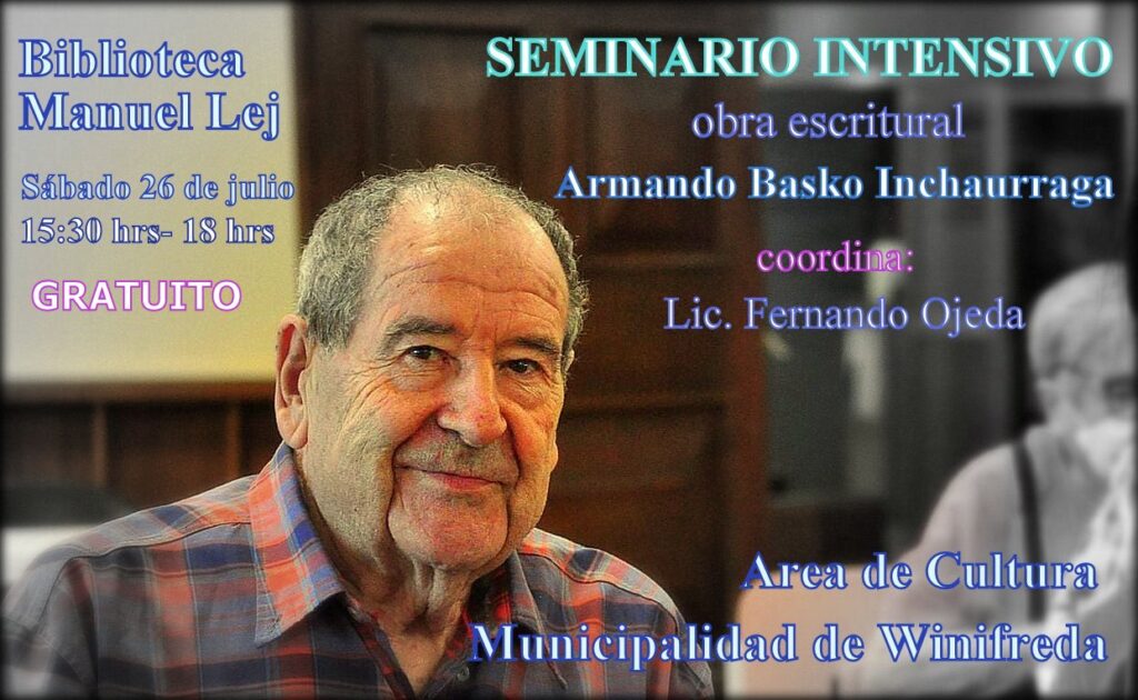 El escritor Fernando Ojeda coordinará un seminario intensivo dedicado a la obra literaria de Armando “Basko” Inchaurraga, fallecido en diciembre de 2023 a los 87 años de edad. Este encuentro se realizará el sábado 26 de julio en la Biblioteca Popular Manuel Lej. La jornada tendrá una duración de tres horas, iniciando a las […]