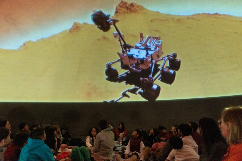 Winifreda: niñas y niños fascinados con el planetario móvil