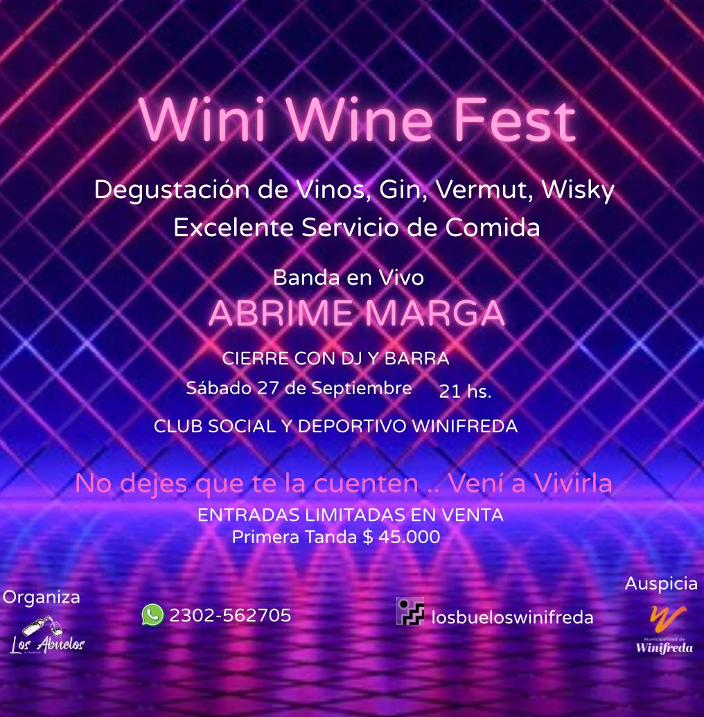 Más de 25 bodegas participarán en la Wini Wine Fest, un evento que tendrá su primera edición este sábado 27 de septiembre desde las 21 en el Club Social y Deportivo Winifreda. Los asistentes podrán degustar de una amplia selección de vinos acompañados de deliciosas propuestas gastronómicas. A partir de la medianoche, la experiencia se … Sigue leyendo La fiesta del vino llega a Winifreda con más de 25 bodegas