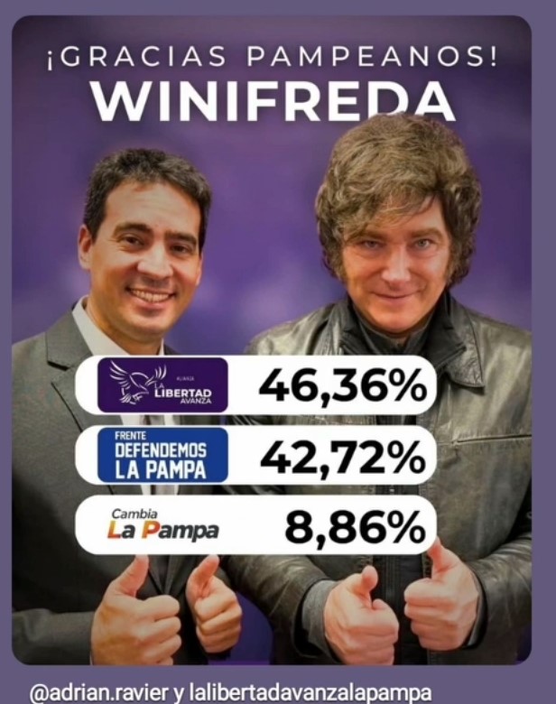 El diputado electo y economista libertario, Adrián Ravier, expresó su agradecimiento a los votantes de Winifreda, tras su triunfo en esta localidad durante las elecciones legislativas nacionales del pasado 26 de octubre. Por redes sociales, Ravier transmitió su mensaje de manera particular acompañándolo con una fotografía suya junto al presidente Javier Milei. En la publicación […]