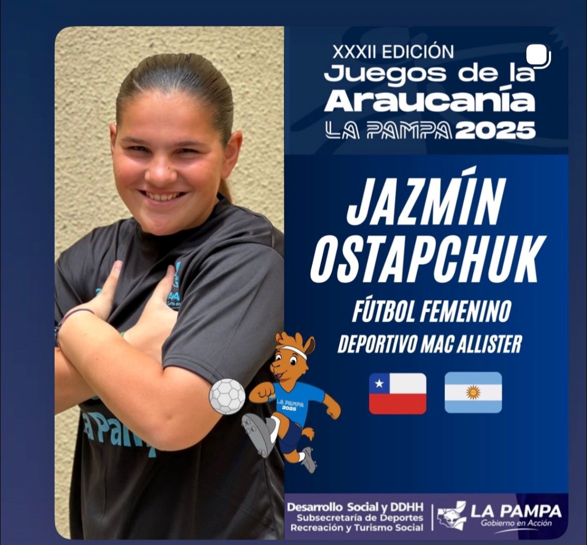 La winifredense Jazmín Ostapchuk forma parte de la Selección Pampeana Femenina de fútbol, que este lunes debutará en los XXXII Juegos Binacionales de la Araucanía La Pampa 2025.