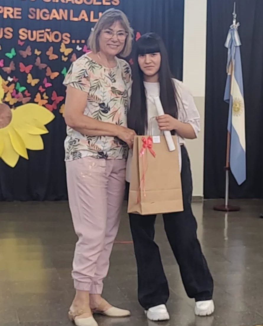 También, a los nuevos egresados de tercer año de secundaria ruralizada: Alexander Samuel González, Álvaro Pereyra Minig, Iara Stemphelet y Nicol Ayelén Moyano.