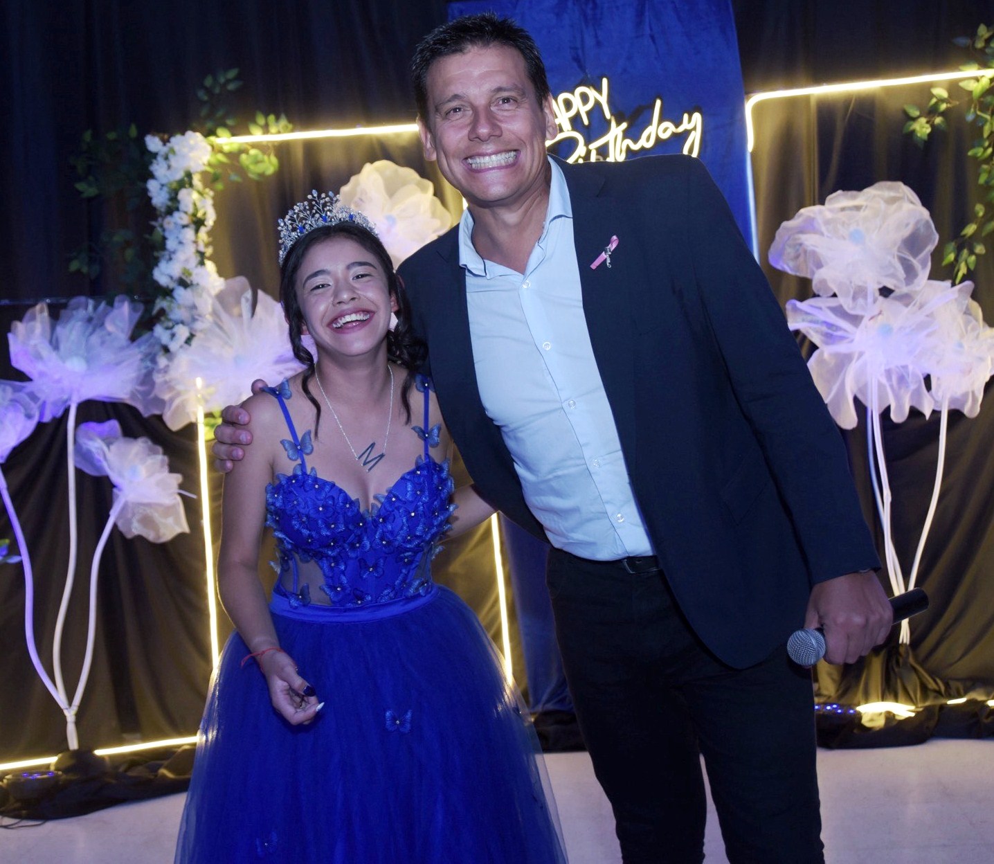 El reconocido locutor santarroseño José Luis Barreiro tuvo el honor de amenizar la fiesta de cumpleaños de 15 de Mía Baini, celebrada el sábado en el Club Social y Deportivo Winifreda.