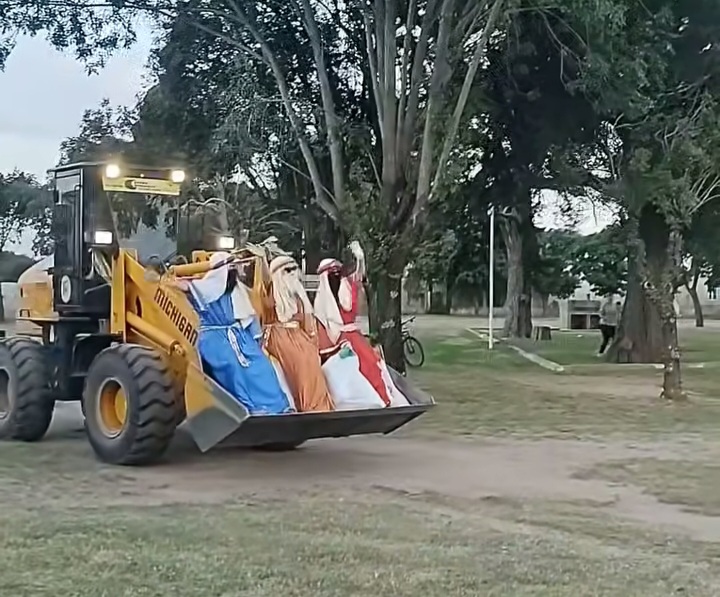 El pasado 5 de enero, los Reyes Magos Melchor, Gaspar y Baltazar llegaron a Mauricio Mayer de una manera muy original: subidos a una pala vial.
