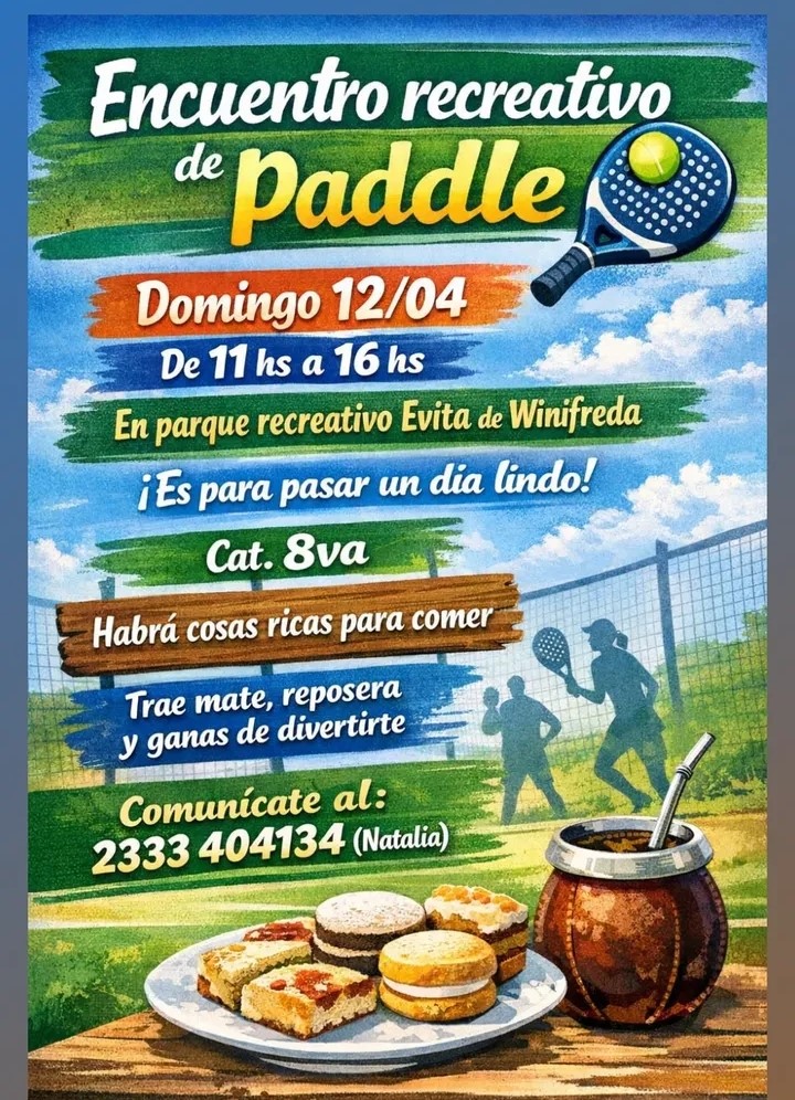 La Municipalidad de Winifreda, a través del área de Acción Social, organiza un encuentro recreativo de pádel exclusivo para mujeres, el próximo domingo 12 de abril.